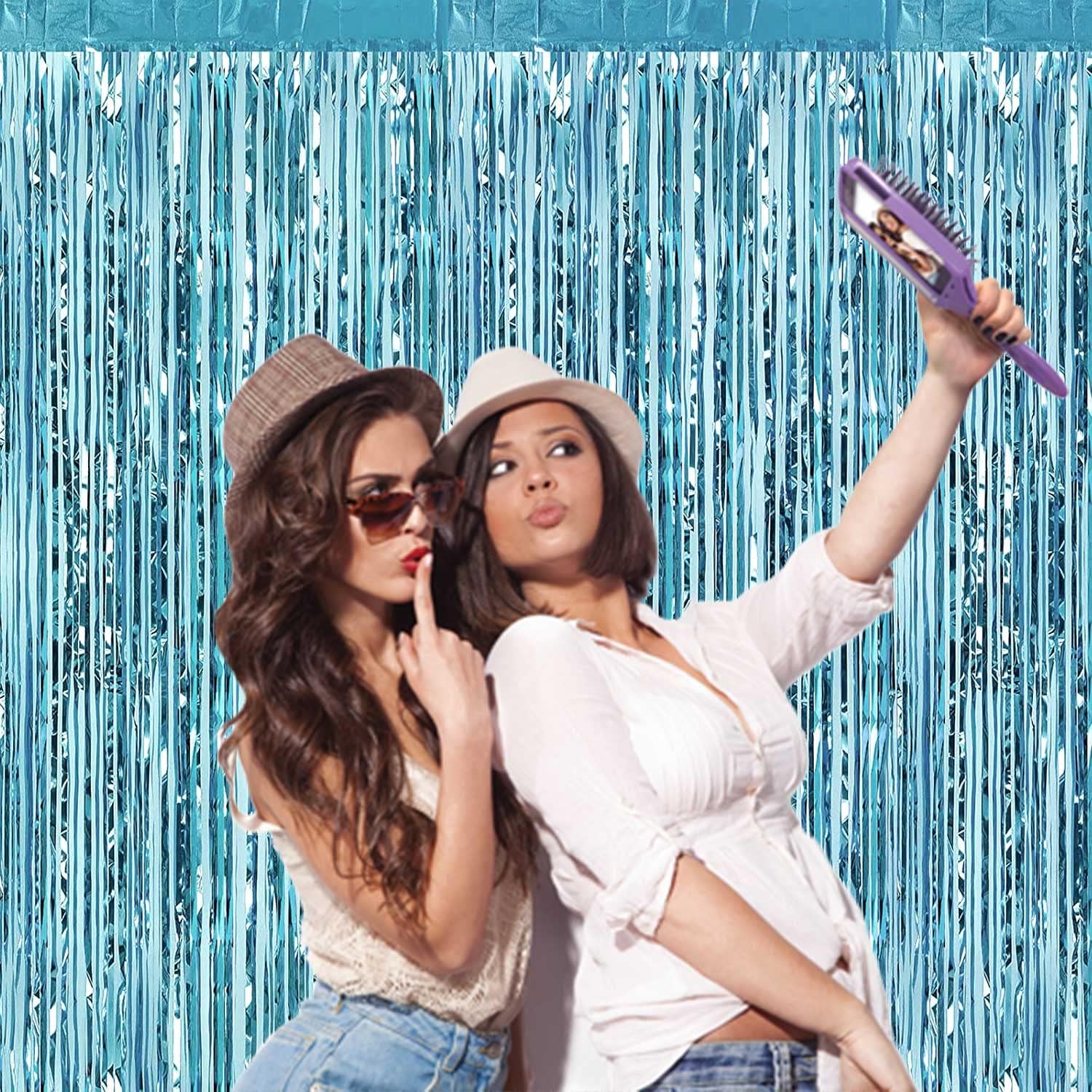4 Pack Light Blue Foil Fringe Curtain Backdrop, 3.3Ft x 9.8Ft Metallic Tinsel Foil Fringe Streamers Curtains for Photo Booth, Wedding, Thanksgiving, Birthday, Christmas, Halloween Party Decoration