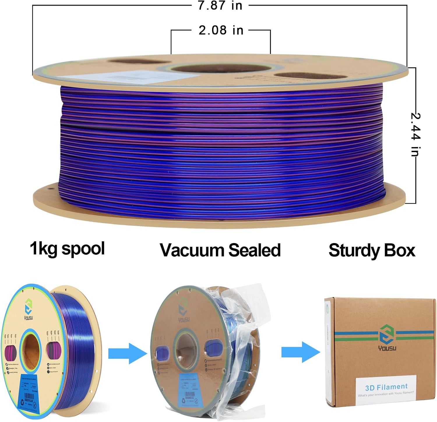 - [Vacuum Sealed Package] Yousu PLA filament comes in a vacuum-sealed bag with a desiccant, maintaining its quality and optimal printing condition. Net weight: 1 KG.