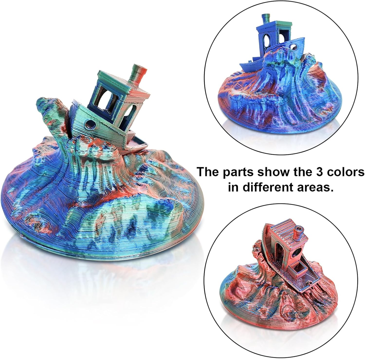 - ăTri-Colors Coextruded FilamentăYousu PLA filament offers three colors in one, Different from normal color change rainbow PLA filament, every inch of this magic 3d filament is made of three colors-Red, Blue, and Green.you will easily get all colors, even for very small prints. Different prints will present different effects. Enjoy your 3d printing creations.