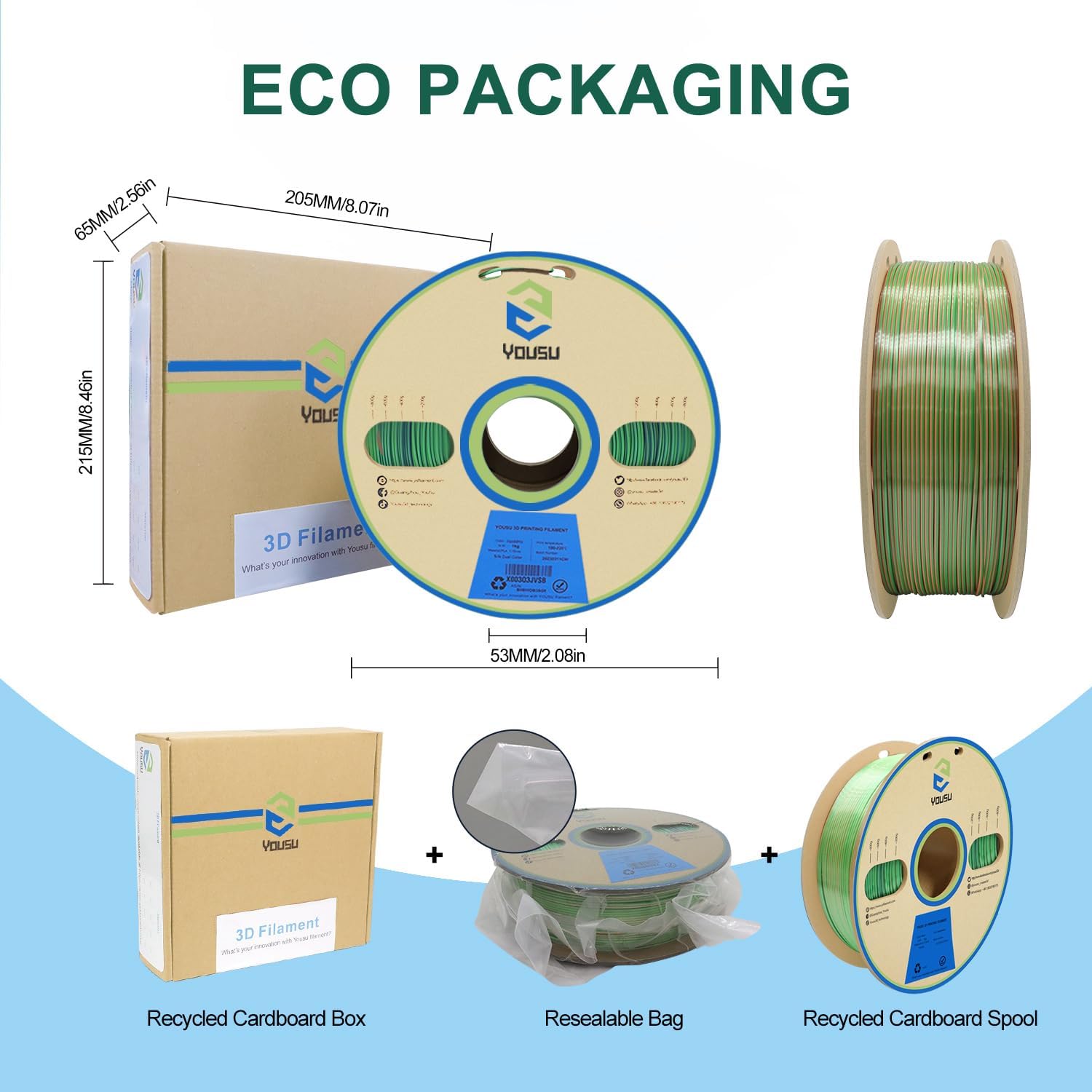 - [Vacuum Sealed Package] Yousu PLA filament comes in a vacuum-sealed bag with a desiccant, maintaining its quality and optimal printing condition. Net weight: 1 KG.