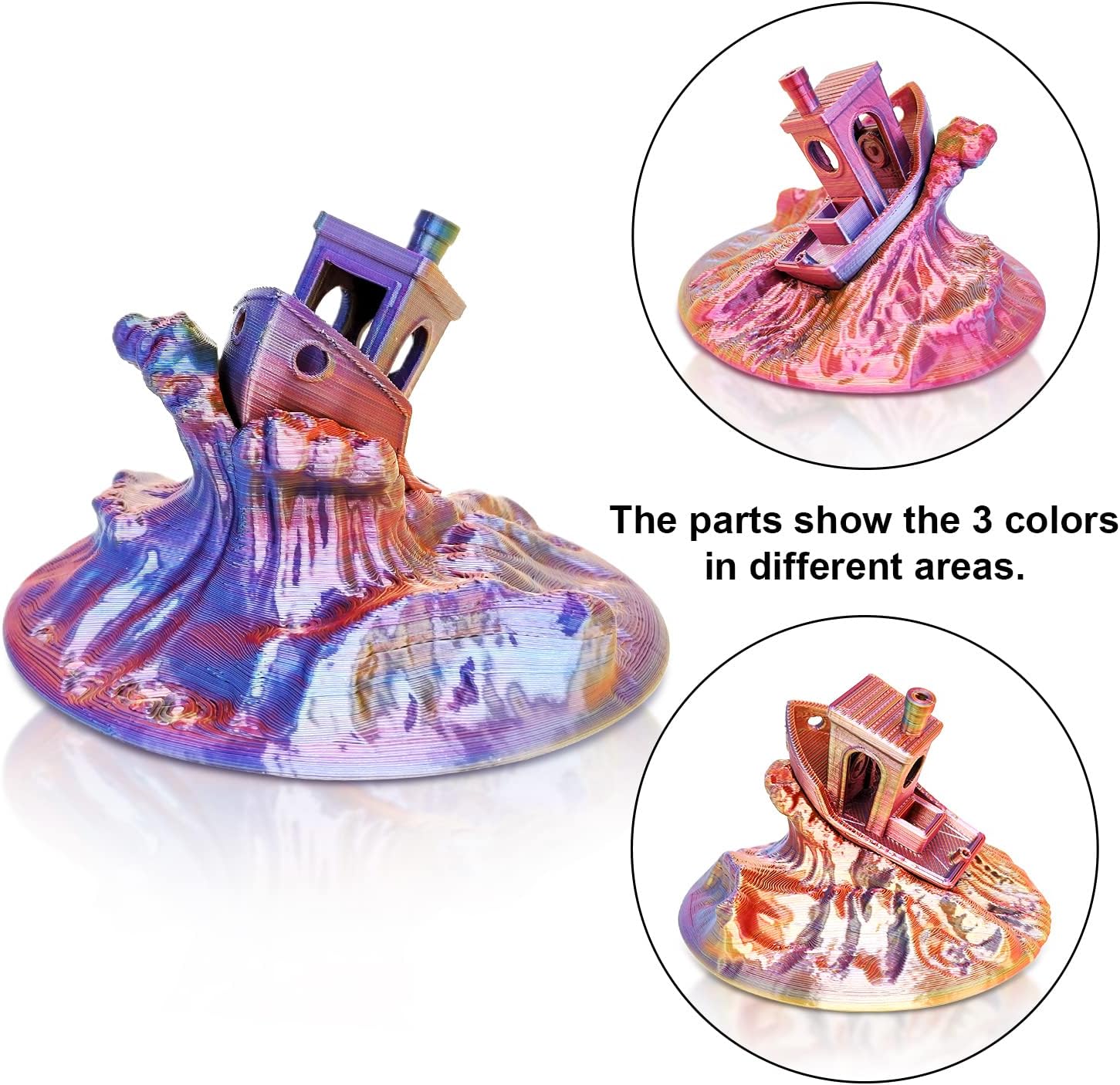 - [Trichromatic PLA Filament Compatibility] Yousu PLA filament offers three colors in one, Different from normal color change rainbow PLA filament, every inch of this magic 3d filament is made of three colors-Red, Blue, and gold. Therefore, you will easily get all colors, even for very small prints. Different prints will present different effects. Enjoy your 3d printing creations.