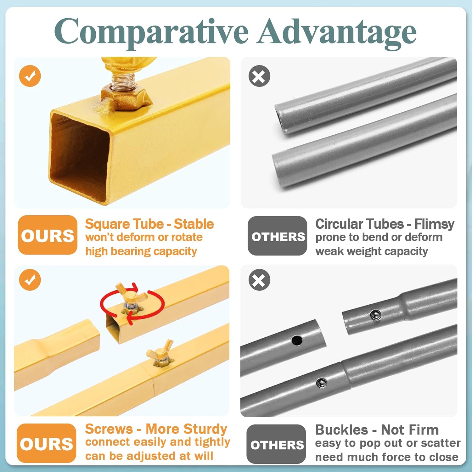 - 【Stable Feet】 Wedding arch stand is stable on it's own as long as the wing nuts screws that keep it together are secured and tight, Please use sand bags on each end attached to the base to balance and further reinforce the back drop if you place square arch outdoors in a windy day. Pretty strong and tough for holding elements. Portable to space it at your will. Good ideas for you to get a fresh new atmosphere when you need to change the old life style.