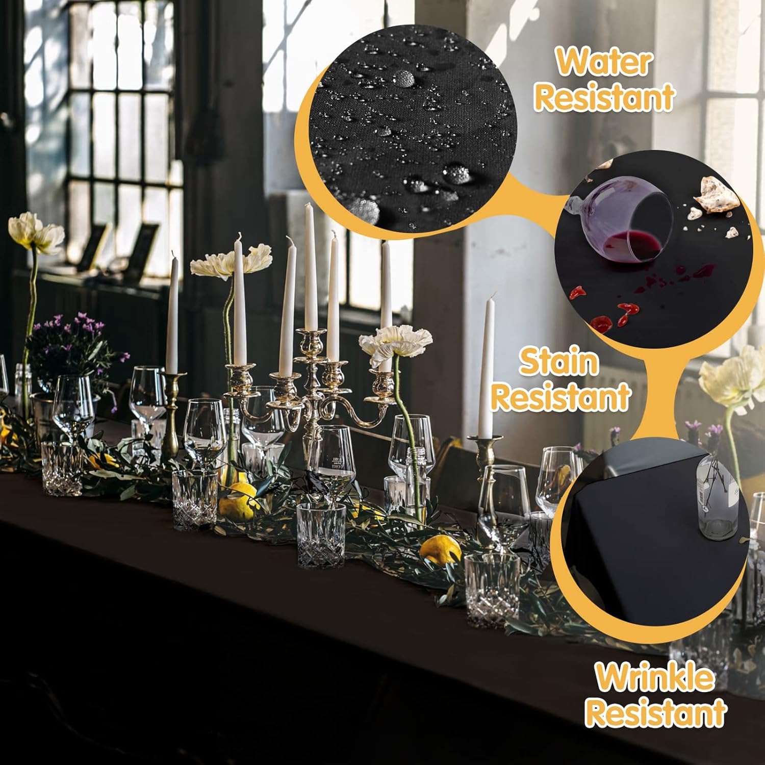 - Stain & Wrinkle Resistant: No worry about juice, red wine, sauce, gravy or other food being spilled on your table cloth, any spots come out easily