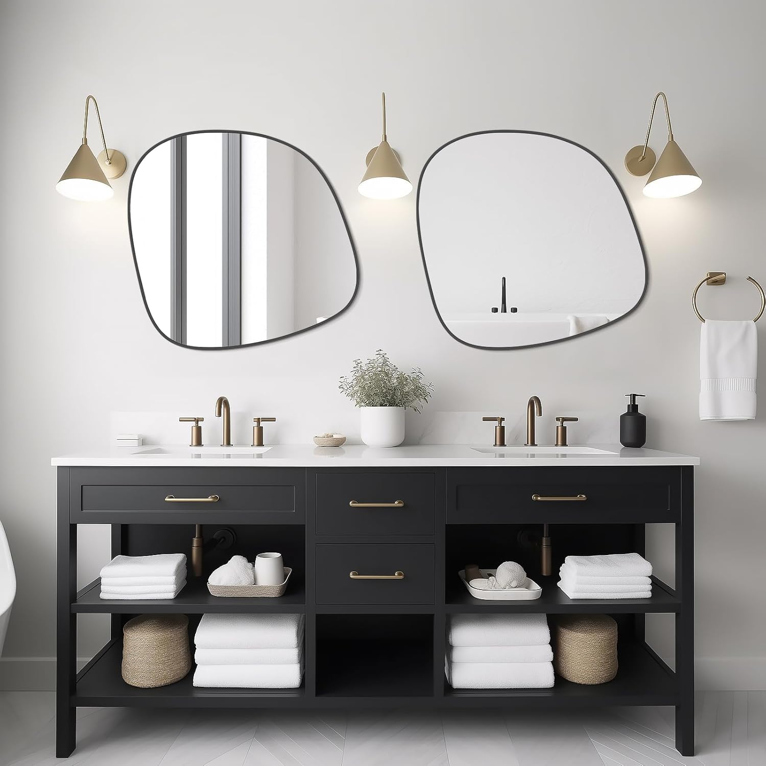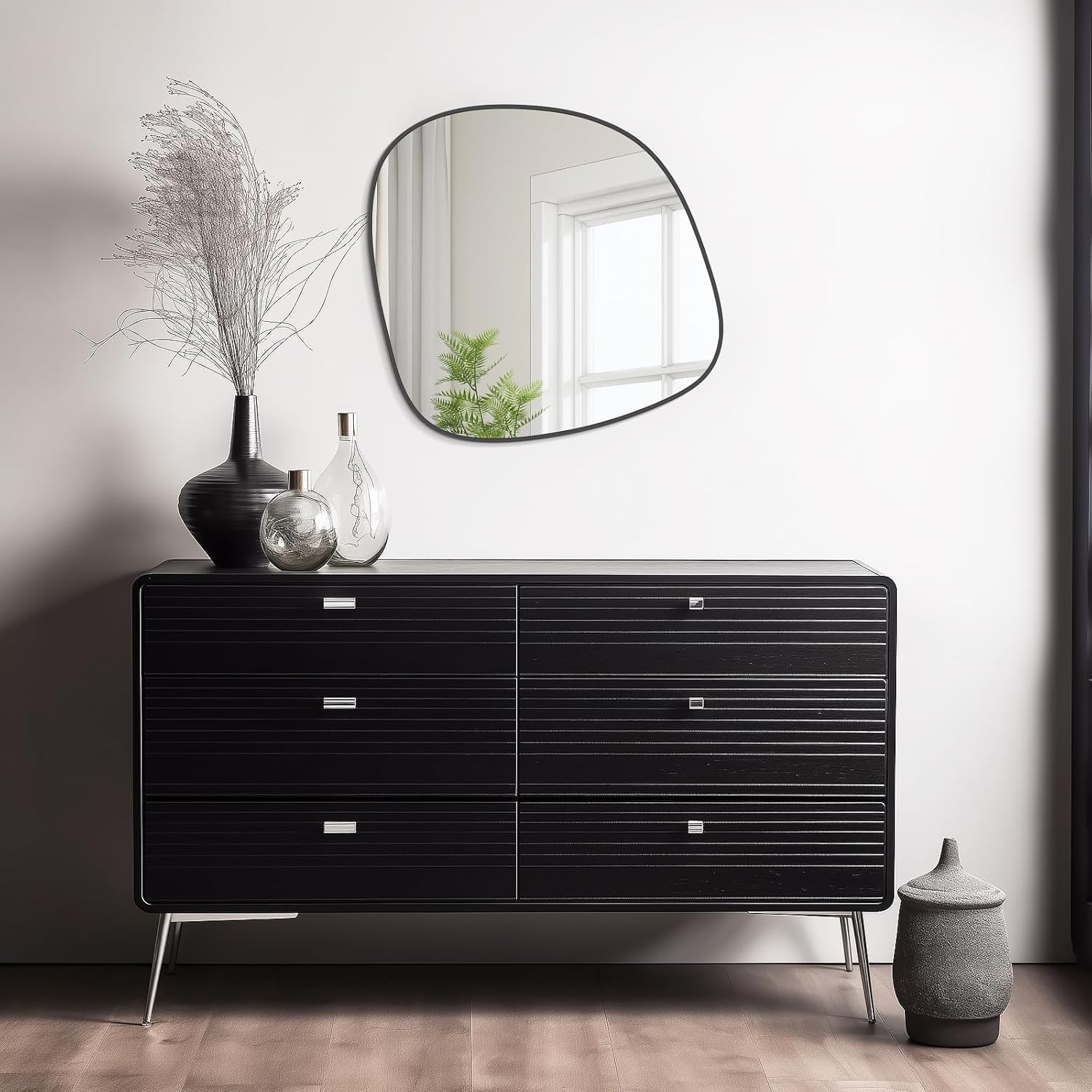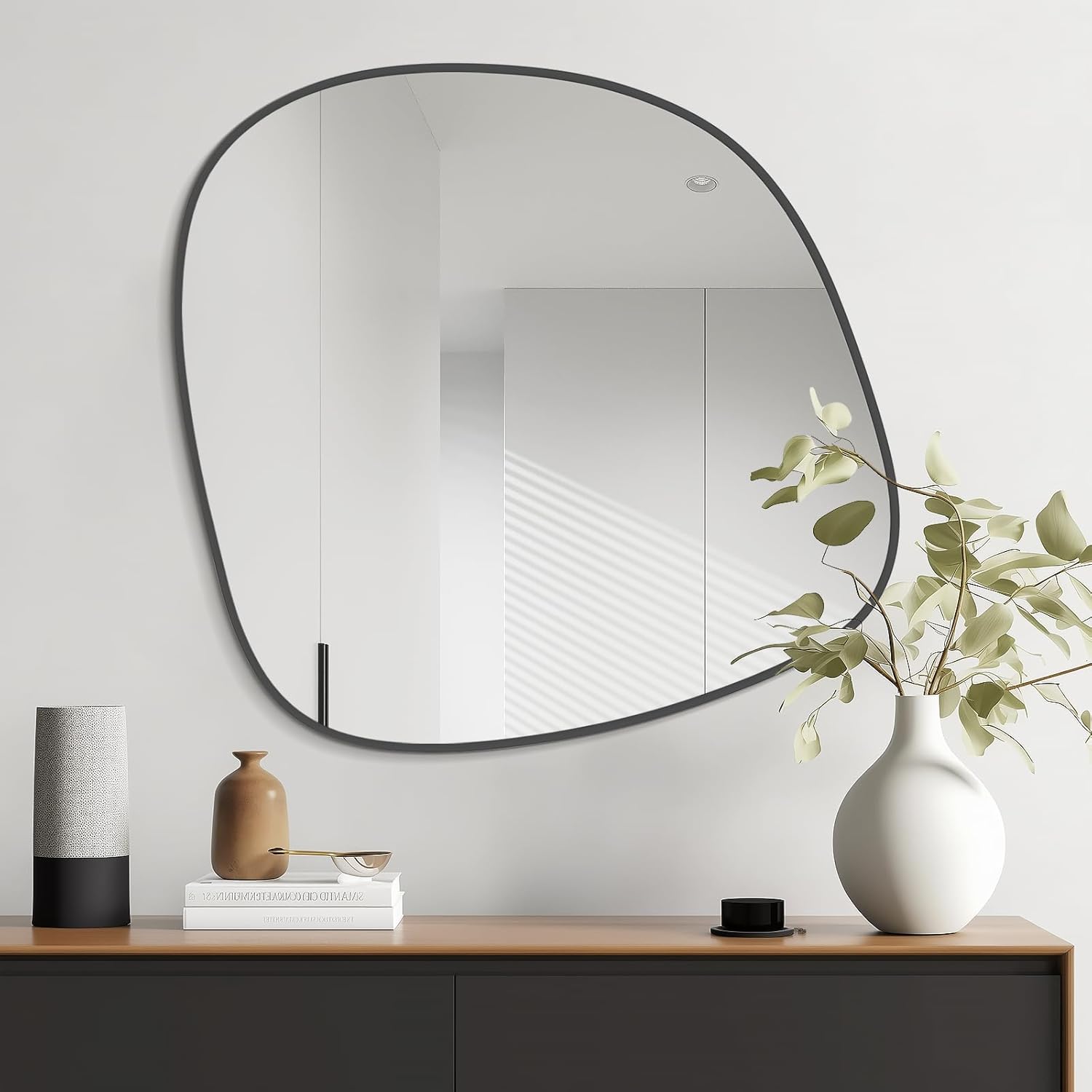 WallBeyond Asymmetrical Mirror, Irregular Wall Mirror, Wall Mirrors Decorative for Bedroom Living Room Entryway Hall, Unique Wall Mirror 27" H x 26" W, Black