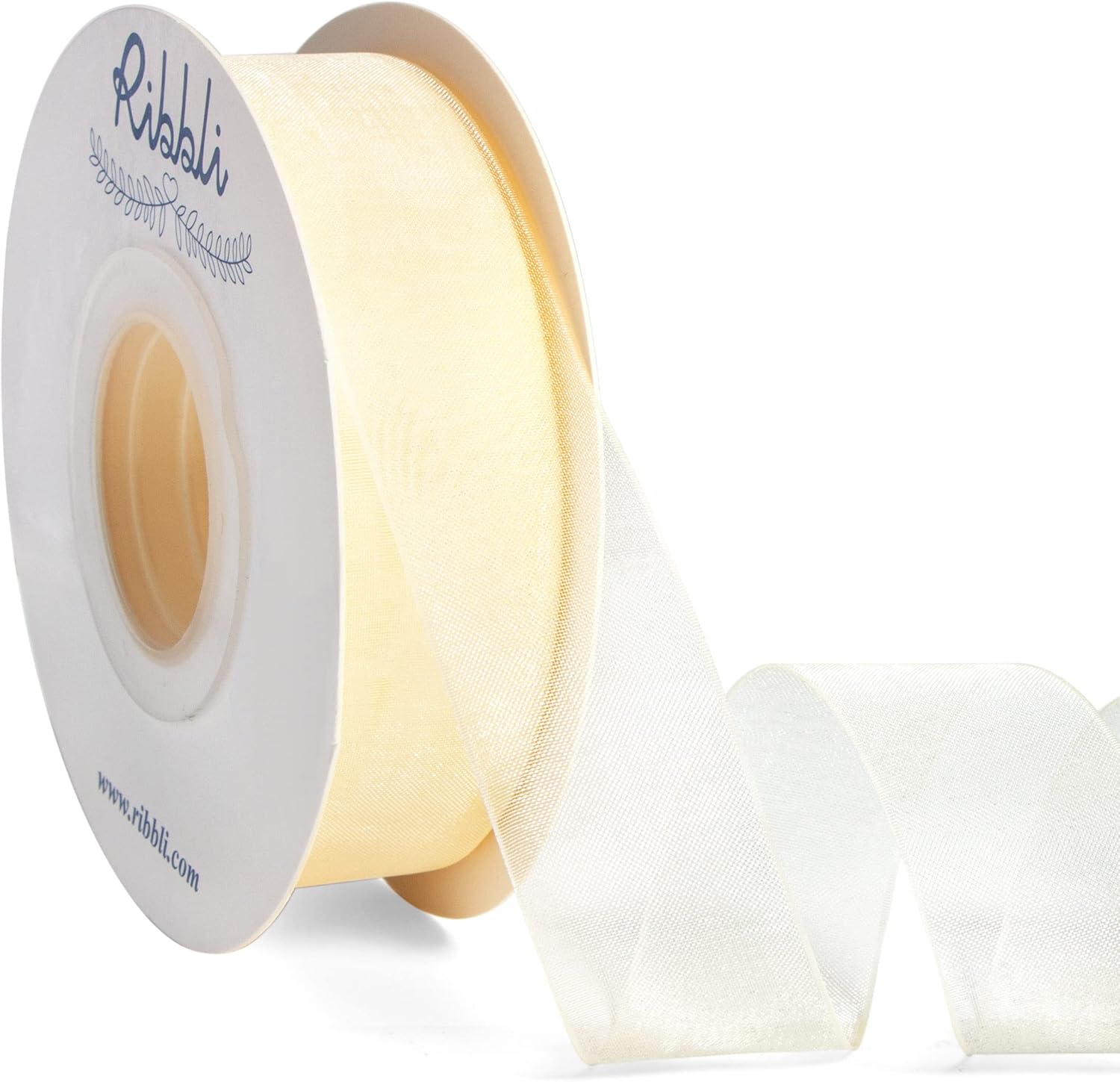 Ribbli Cream Organza Ribbon,1 Inches x Continuous 50 Yard, Cream Sheer Ribbon for Gift Wrapping,Cookie Wrapping,Wedding Decoration,All Crafting and Sewing