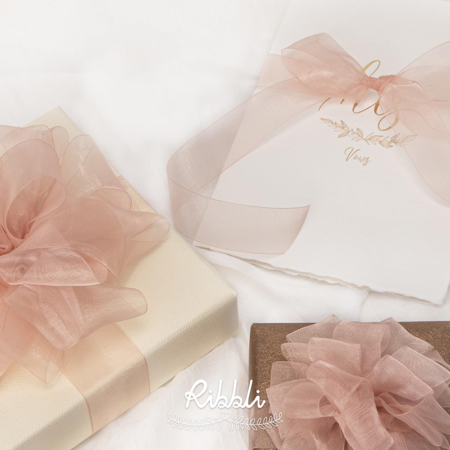 Ribbli Sweet Nectar Pink Organza Ribbon,1/2 Inches x Continuous 50 Yard,Rose Gold Sheer Ribbon for Gift Wrapping,Cookie Wrapping,Wedding Decoration,All Crafting and Sewing