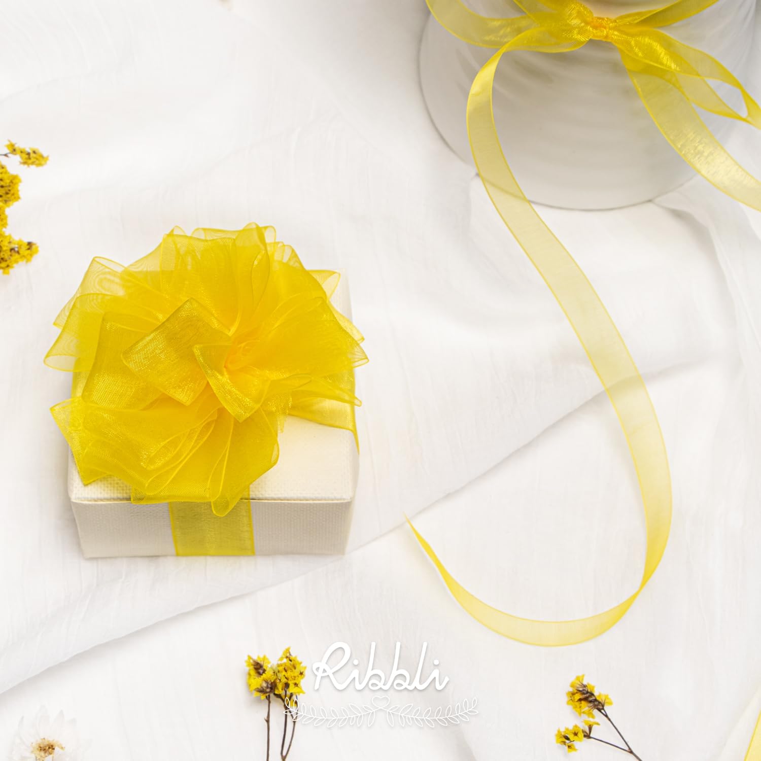 Ribbli Danffodil Yellow Organza Ribbon,1/2 Inches x Continuous 50 Yard, Yellow Sheer Ribbon for Gift Wrapping,Cookie Wrapping,Wedding Decoration,All Crafting and Sewing