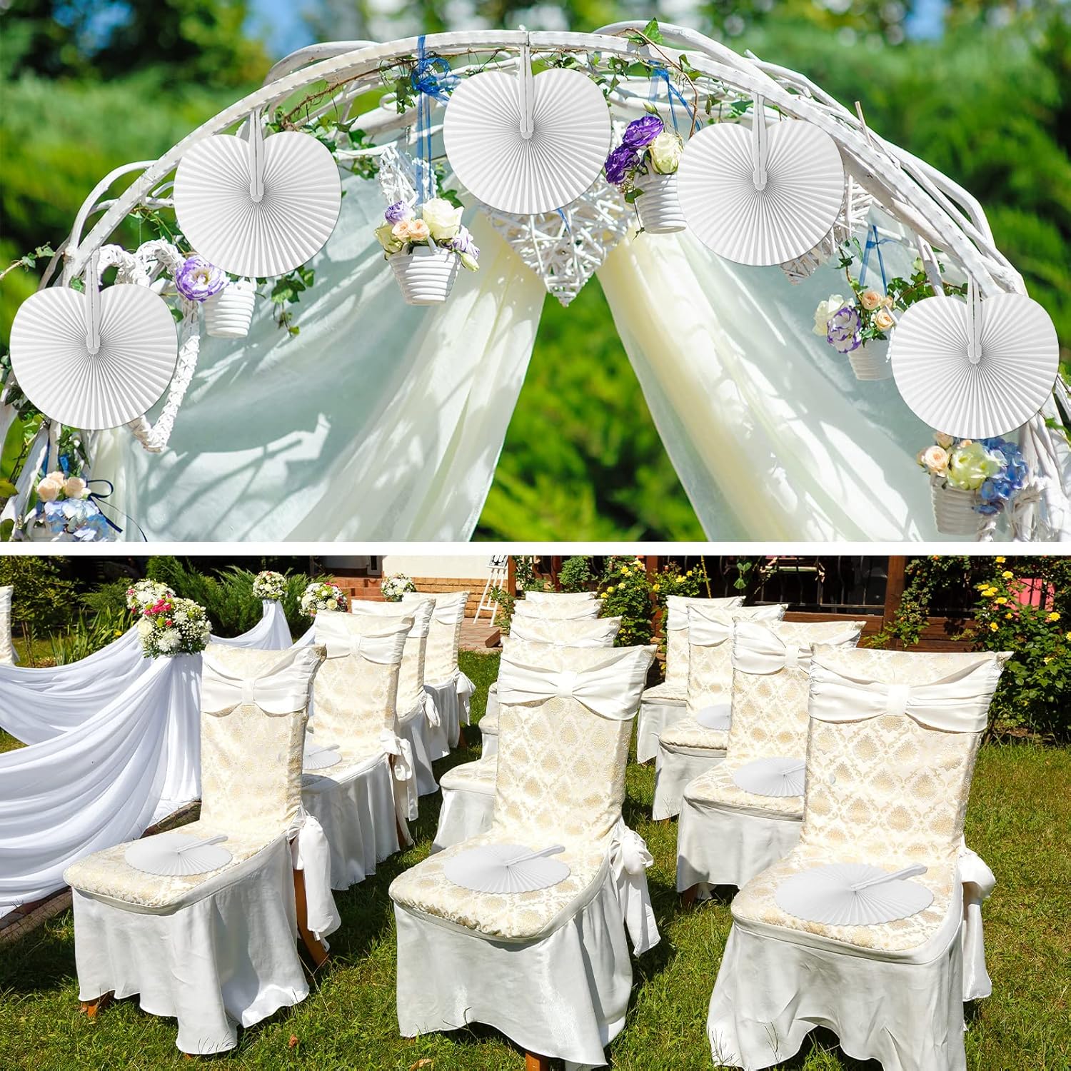 - Large Number to Apply: you will receive 200 pieces of round wedding white fans, the sufficient quantity can not only meet your daily use, replacement and sharing needs, but also are suitable to work as wall decorations for weddings and parties