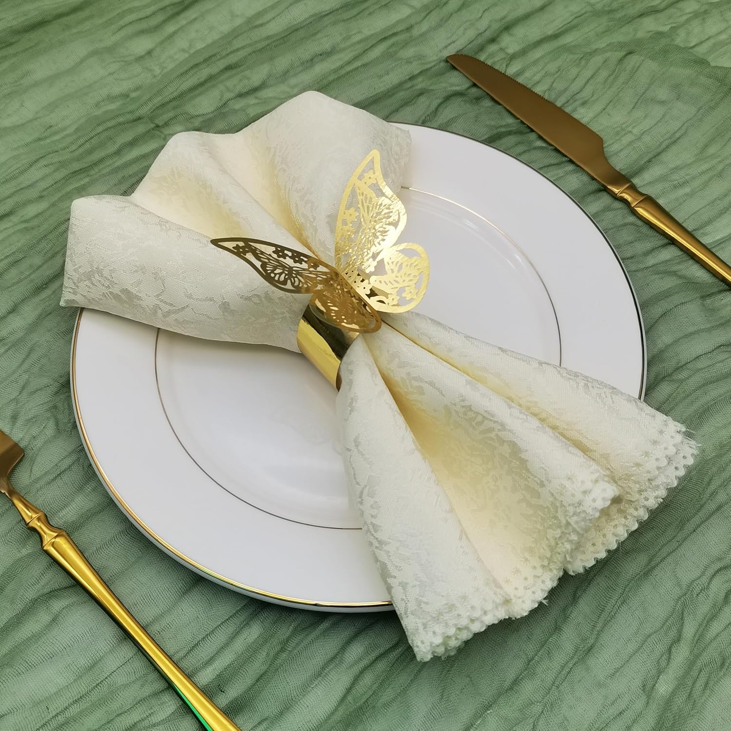 Butterfly Gold Paper Napkin Rings Set of 100 pcs,3D Laser Cut Foil Cutout Paper Napkins Holder,Disposable Serviette Rings for Tables,Decorations,Wedding,Dinner,Party Decor, TYPE1