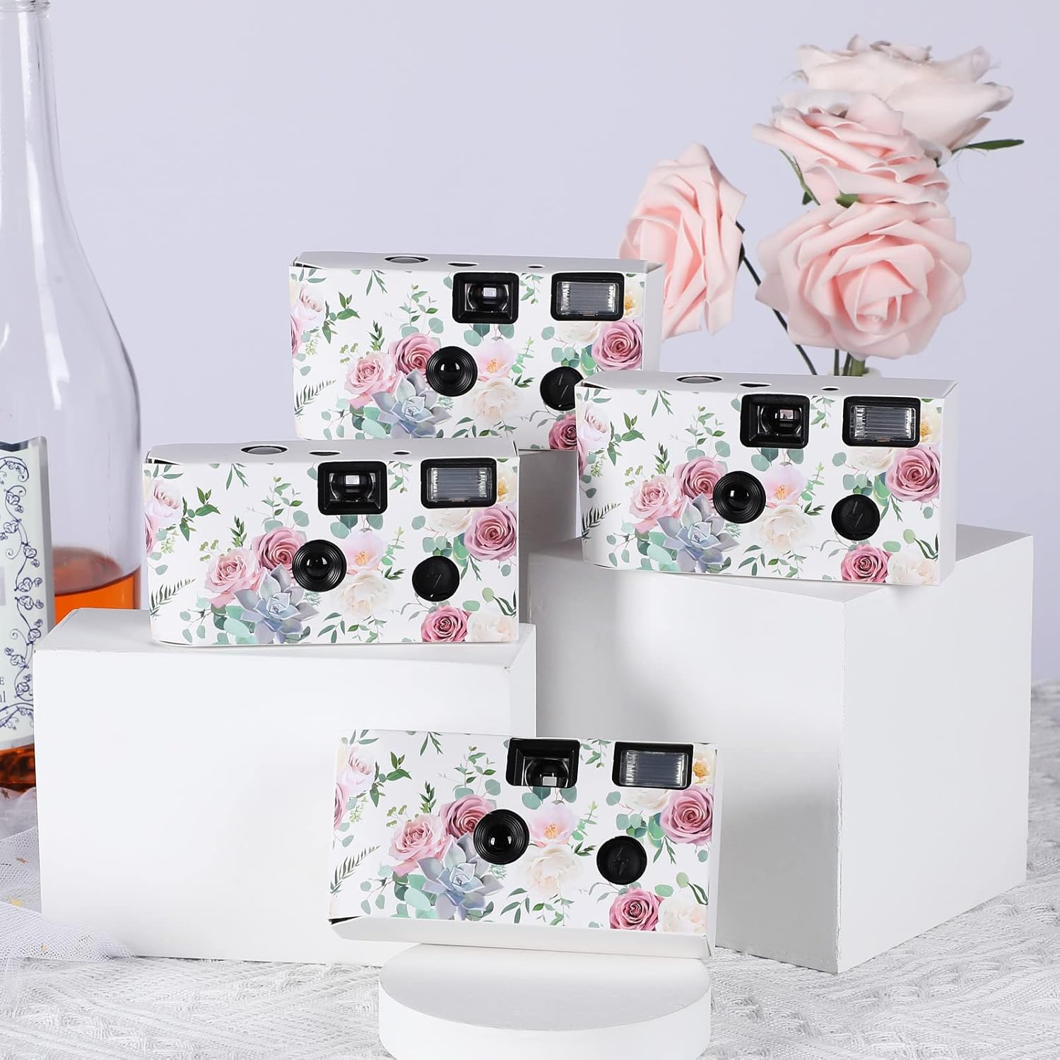 - Disposable Film Camera Set: come with 4 disposable cameras with flash and 34mm color films; The camera case is packaged in kraft paper with eucalyptus and roses. Important note: Don't disassemble the camera to avoid film exposed; Take it to the photo development shop after shooting
