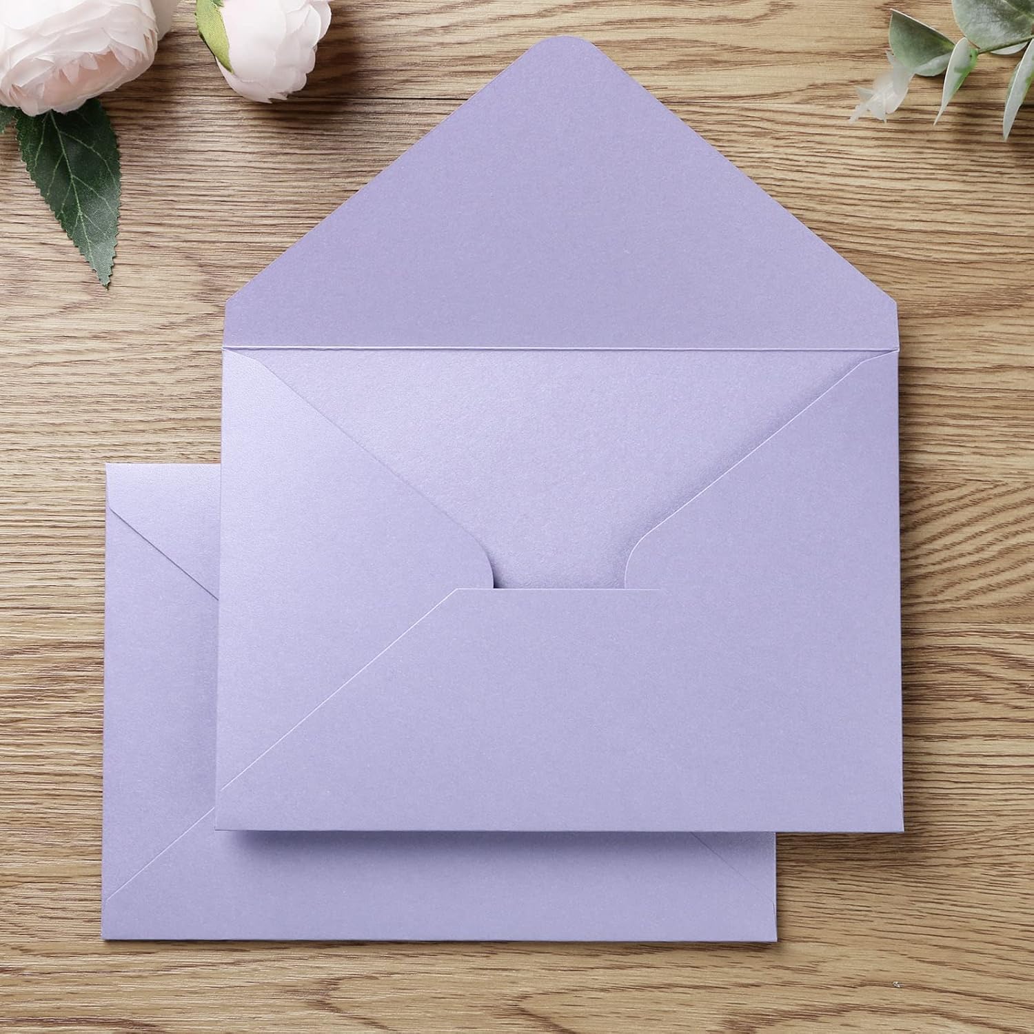 - π Package included: 50 pieces Shiny Lilac envelopes + 50 Gold Seals.
