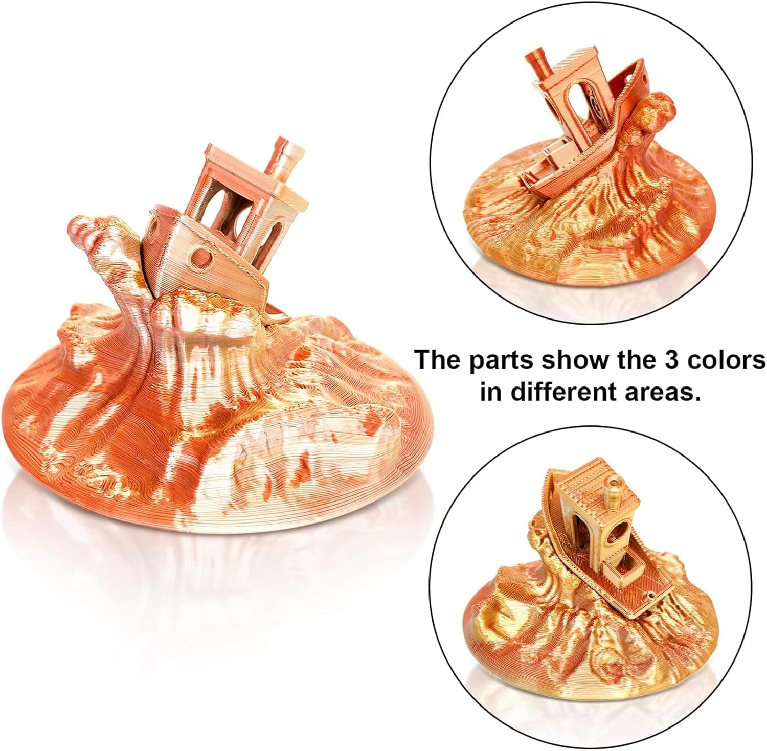 YOUSU PLA Filament1.75mm, Triple Color Coextrusion Silk 3D Printer Filament 1.75mm for 3D Printer & 3D Pen, Multicolor PLA Rainbow Filament, 1kg(2.2lbs) Silk PLA Gold Silver Copper.