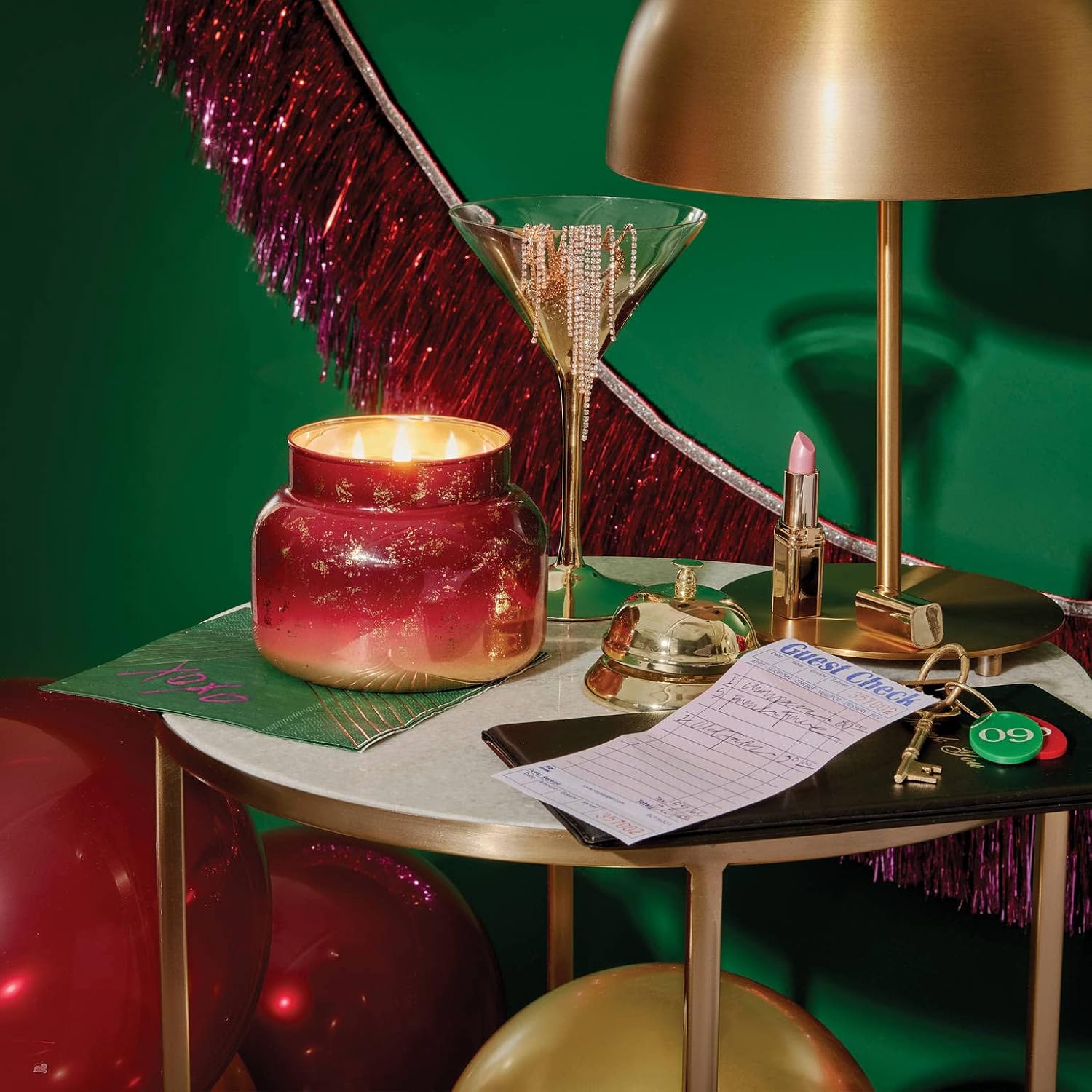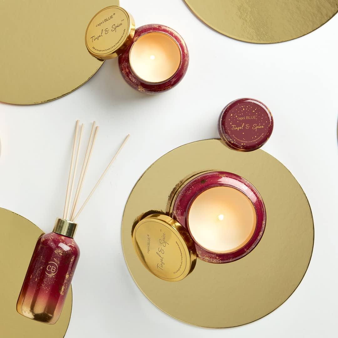 Capri Blue Glimmer Jar Candles - Luxury Holiday Scented Candles for Home - Long Lasting Soy Wax Blend - Scented Holiday & Home Decor - Tinsel & Spice Oversized Jar (28 oz)