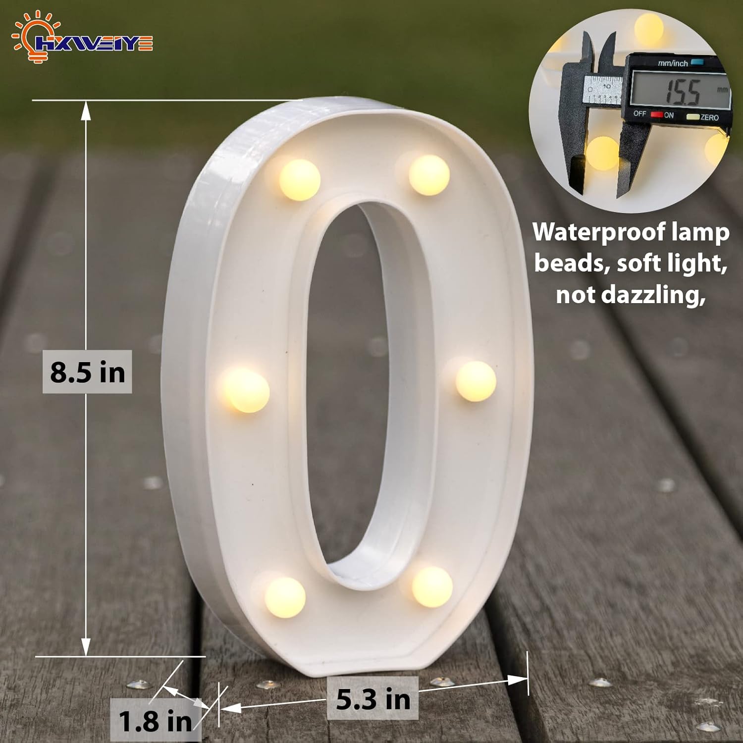HXWEIYE Light Up Numbers-0, LED Marquee Number Lights Sign 26 Alphabet and 10 Number for Party Bar Birthday, Light Up Letters Battery Powered Warm White Christmas Decoration Numbers Lights