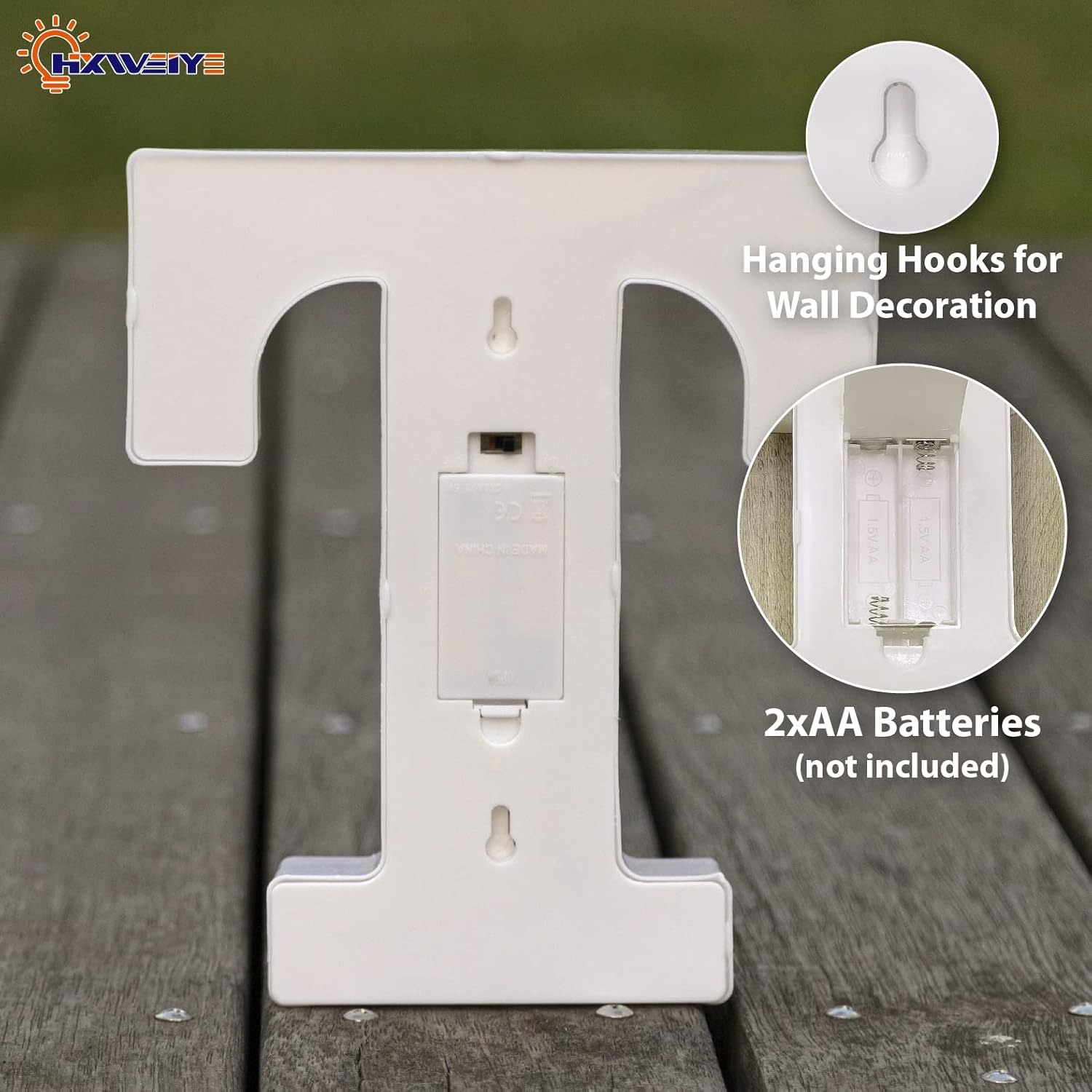 HXWEIYE Light Up Letters T, LED Marquee Letters Light Sign 26 Alphabet and 10 Number Big Lights Letter for Party Birthday Bar Battery Powered Christmas Decor Letter Lights (Warm White)
