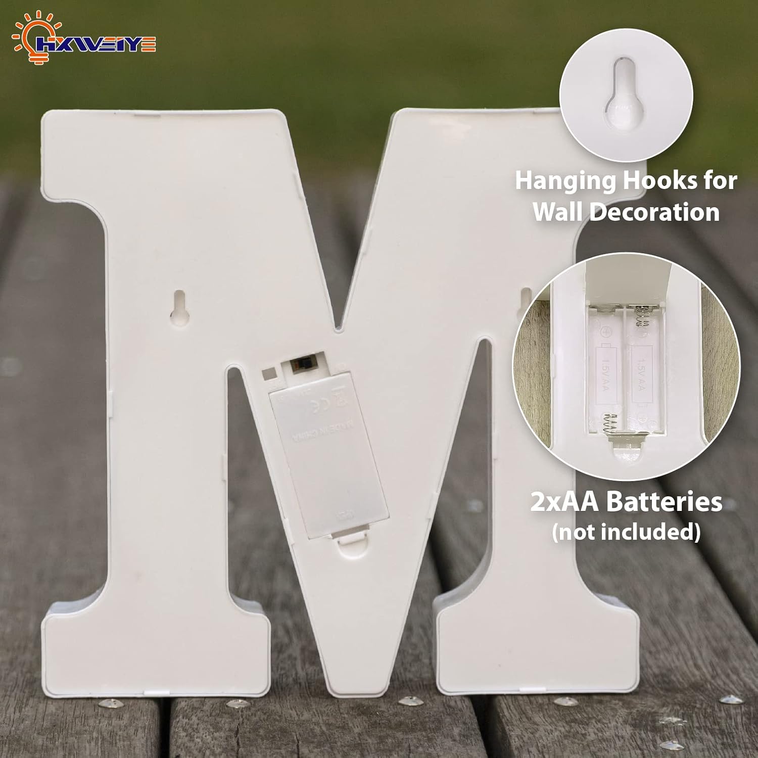 LED Marquee Letters Lights Sign-M, HXWEIYE Led Letters Lights 26 Alphabet, Light Up Number 0-9 Letters Sign for Party Home Birthday Anniversary Battery Powered Lighted Letters(Warm White)