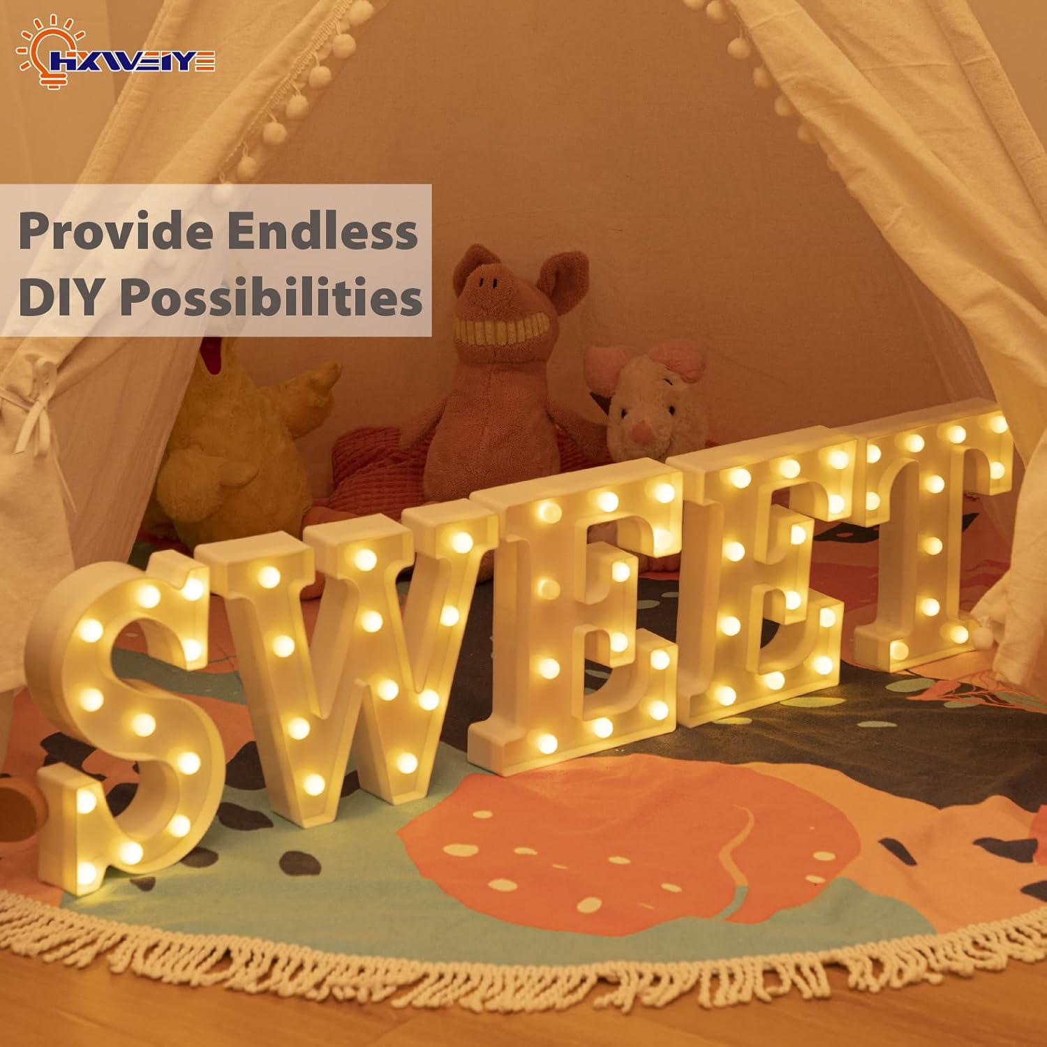 HXWEIYE Light Up Letters LED Marquee Letters Light Sign 26 Alphabet and 10 Number Lights Letter for Party Birthday Bar Battery Powered Christmas Decor Letter Lights (Warm White S)