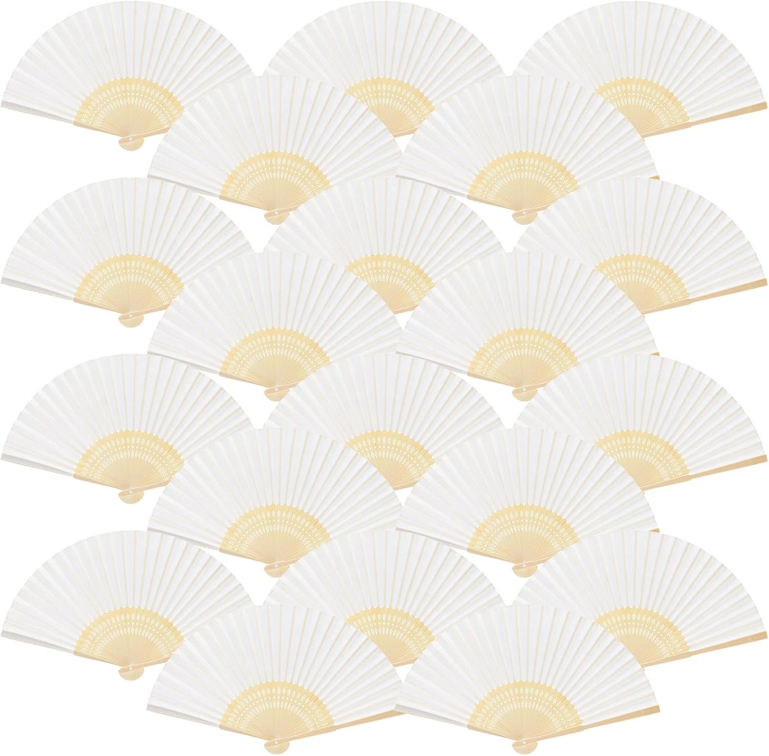 FEPITO 55 Pieces White Handheld Paper Fan Paper Folding Fans with Bamboos for Wedding Gift, Party, Home