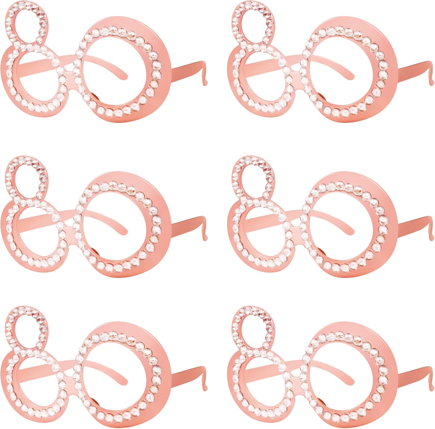 80th Birthday Glasses - 6 Pairs Rose Gold 80 Years Old Glasses with Rhinestones Frame, Funny Plastic Costume Photo Booth Props for 80th Anniversary Party Decorations