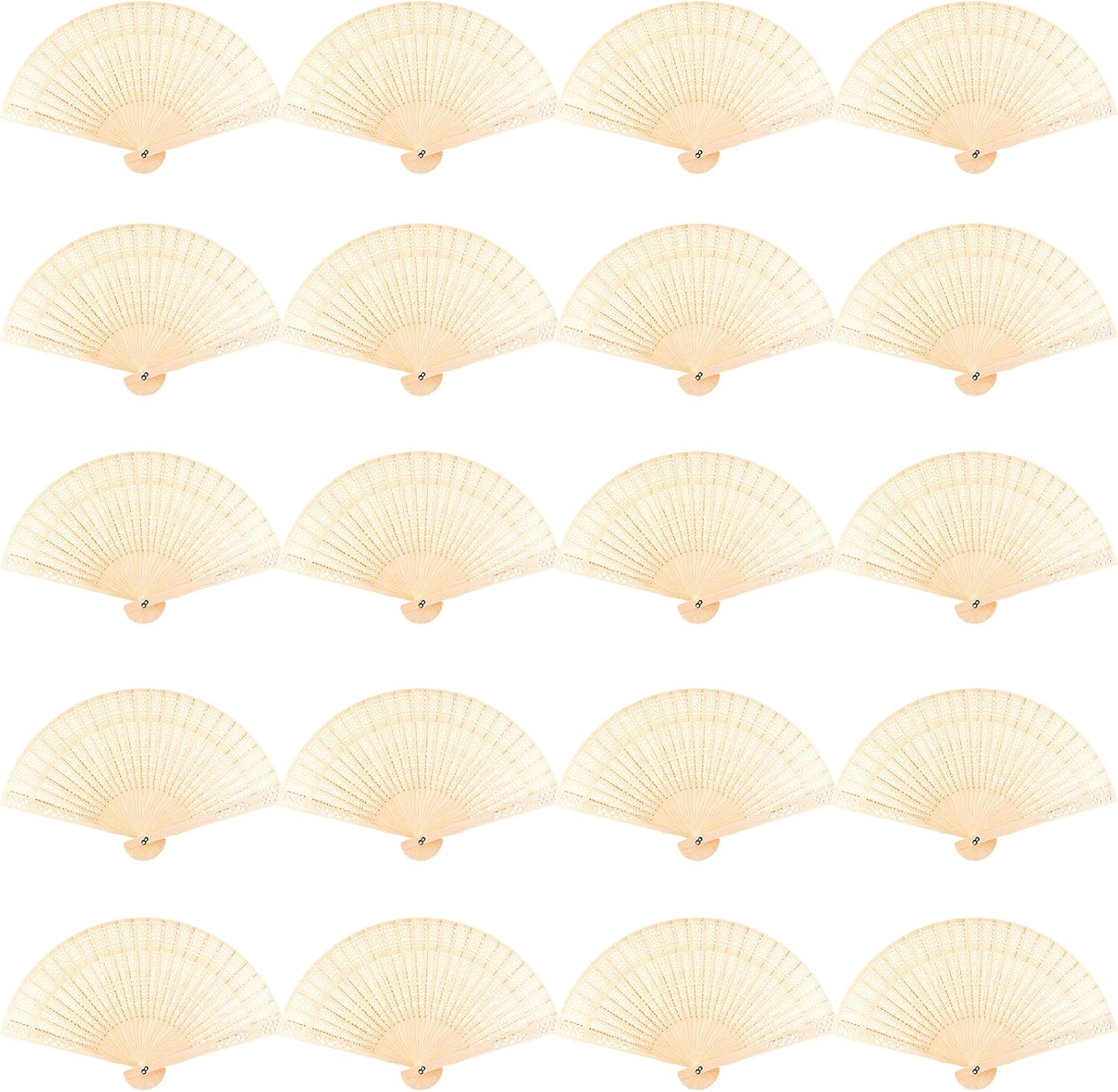 FEPITO 20 Pieces Wooden Handheld Paper Fan Wooden Folding Fans with Bamboos for Wedding Gift, Party, Home