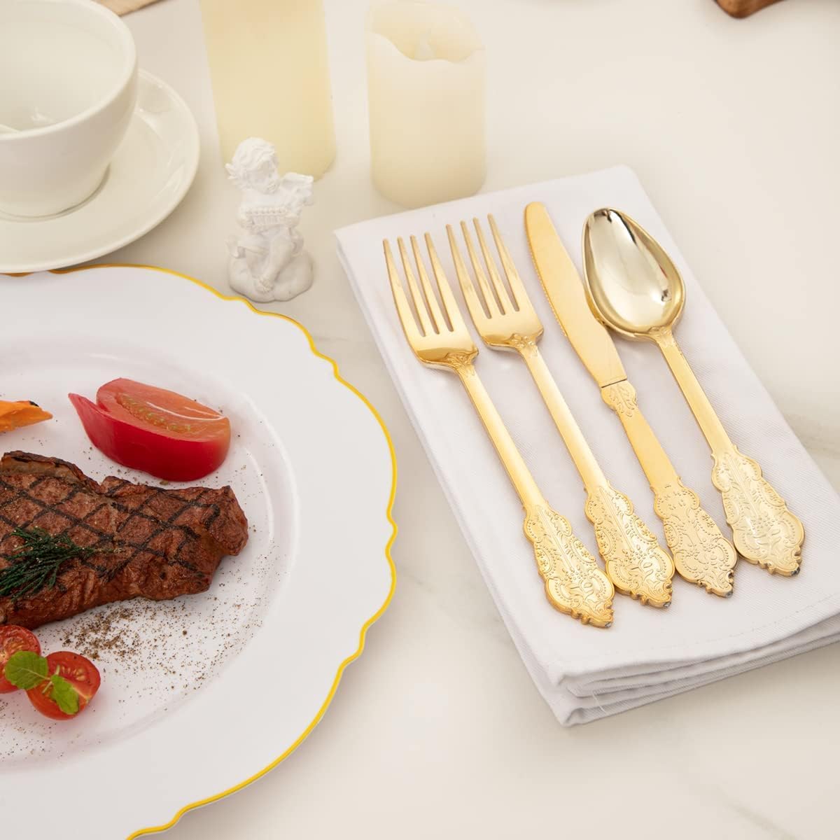 - GREAT VALUE:Look! What exquisite gold plastic silverware! It includes 100 forks, 50 spoons and 50 knives.