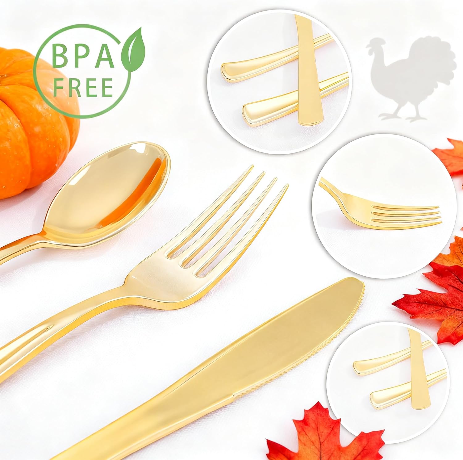 - GREAT VALUE SET: The gold plastic silverware includes 80 forks, 40 spoons and 40 knives. You can save a fortune on tableware and make your party more sophisticated. Gold plastic utensils for any Parties.