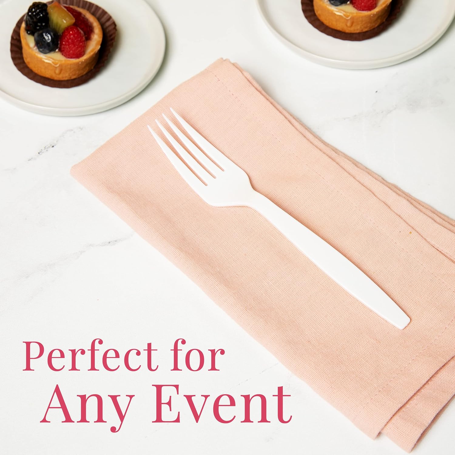 - FORK SET: 100 white disposable plastic forks (7") for easy post party cleanup. Not dishwasher, microwave, and oven safe.
