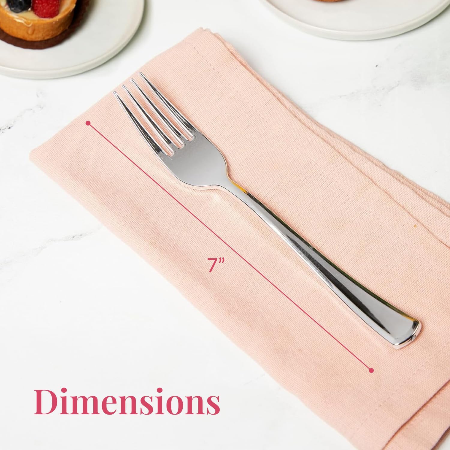 - Elegant Silver Finish: Featuring a classic silver sheen, these plastic silver forks disposable add a touch of sophistication to any table setting; perfectly suited for formal or casual occasions