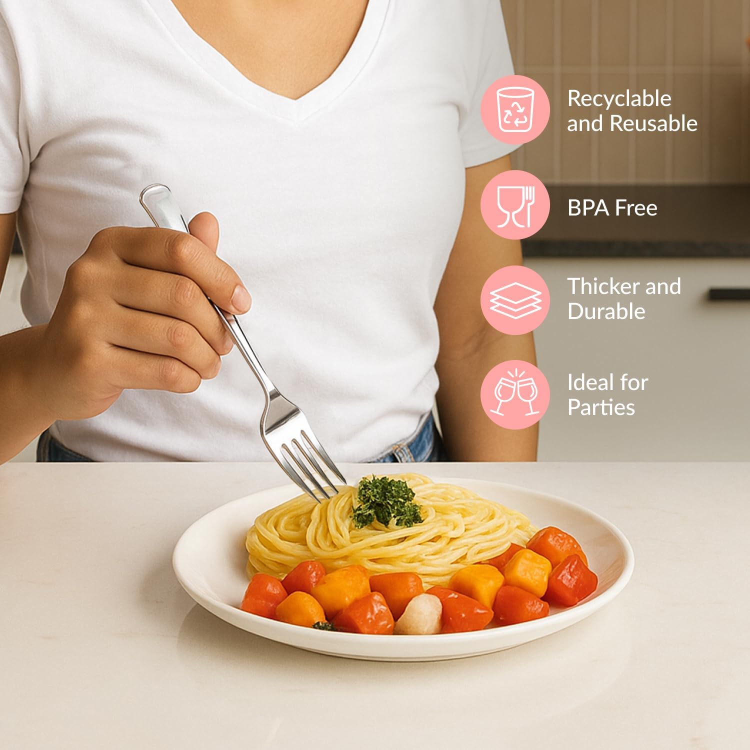 - Versatile Use: Designed for versatility, these disposable silver forks fit seamlessly into any event, from weddings and holiday gatherings to casual get-togethers, adding convenience and style