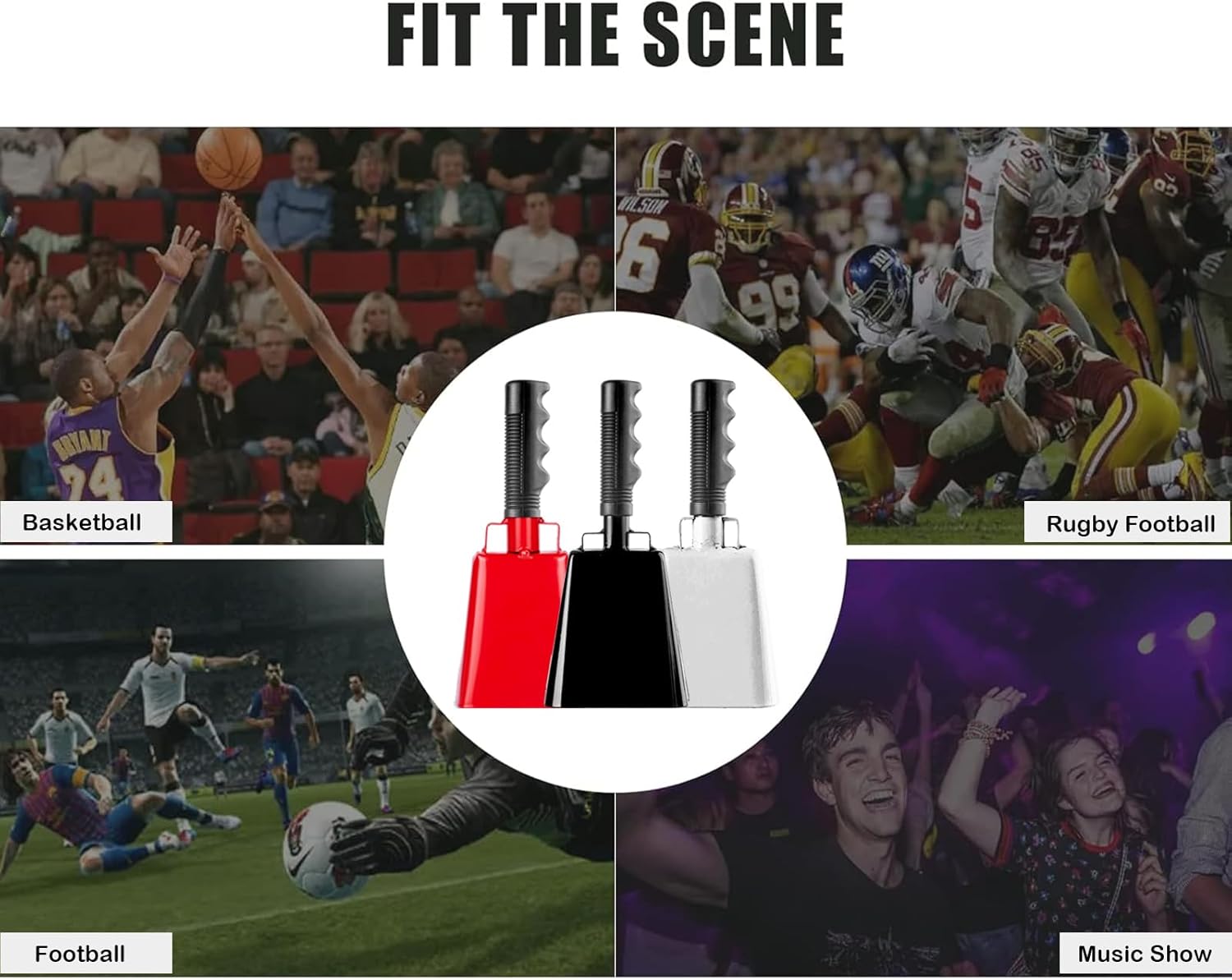 - 【Reliable Material】Cowbell handle is made of safe PVC plastic with a concave and convex surface design that allows you to comfortably and easily hold the cowbells and flick your wrist to make a loud sound