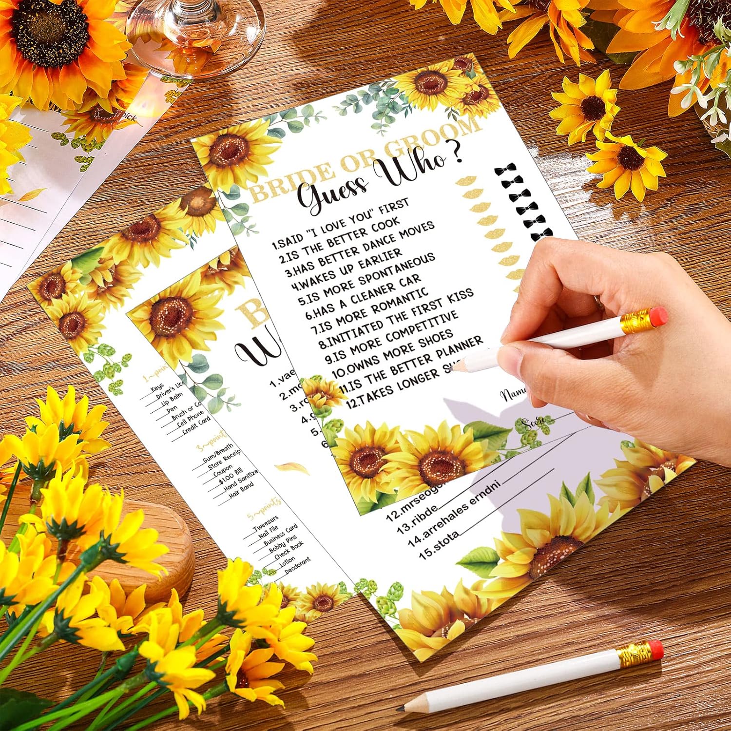 Teling 145 Pieces Bridal Shower Game Bridal Shower Favors Set Wedding Games Cards and Pencils for Bride Groom Bachelorette Party Wedding Party Favor(Sunflower Style)
