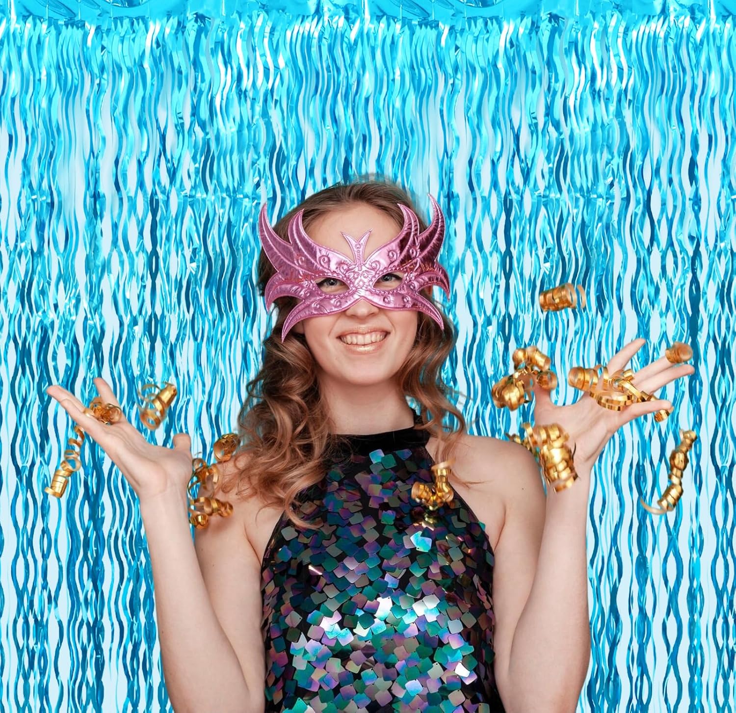 - Package Includes:1 pack wavy light blue foil fringe curtain,3.2 ft x 6.5 ft each,suitable for hanging on a door or coverage a wall fully