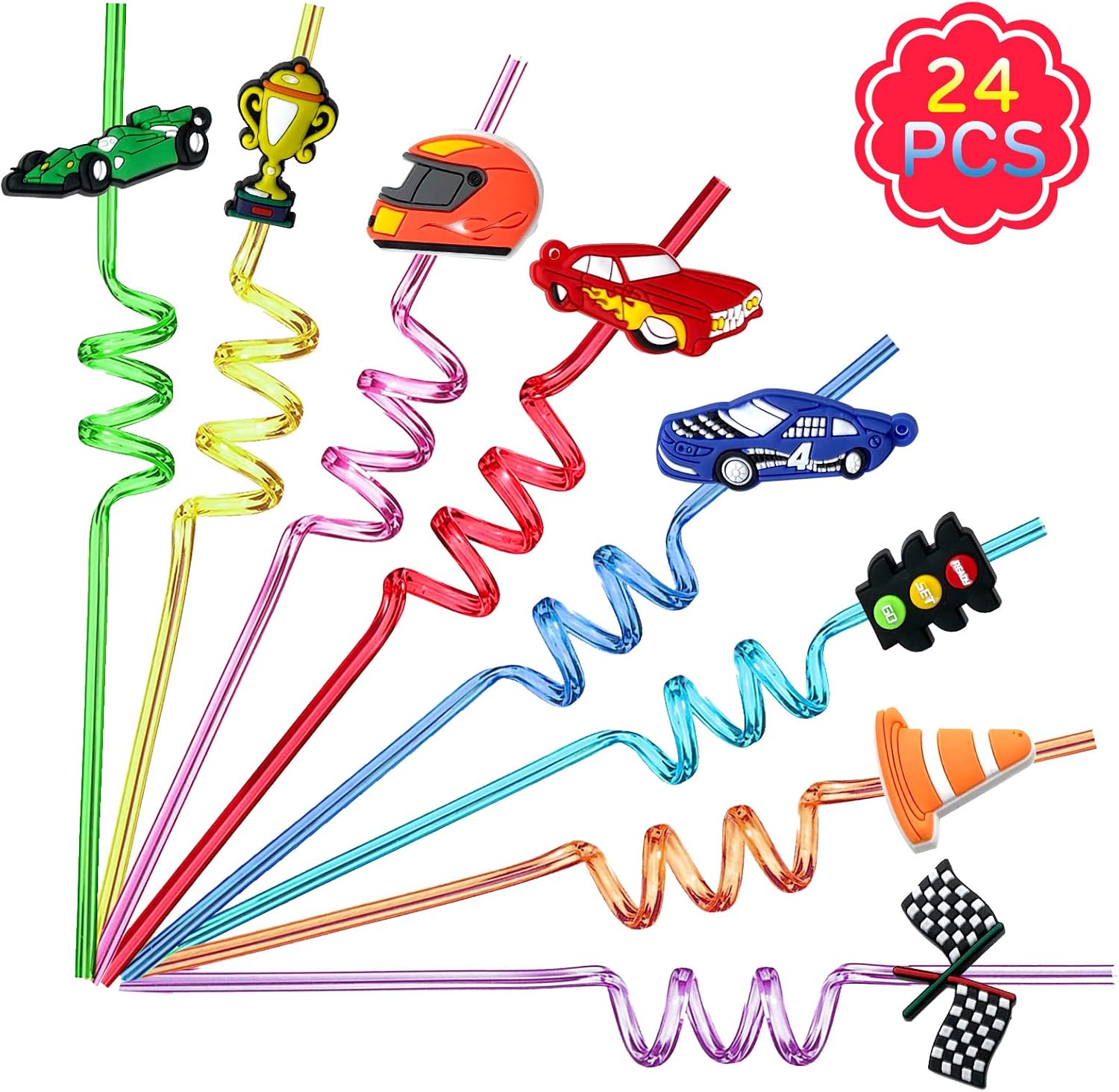 - Huge Hit in Parties: Packed with 24 racer car patterned curly straws in 8 different design styles, 8 colors straws, attractive and creative, suitable for teenagers and adults. The color is rich, so it can meet the needs of people who like different colors of silly straws