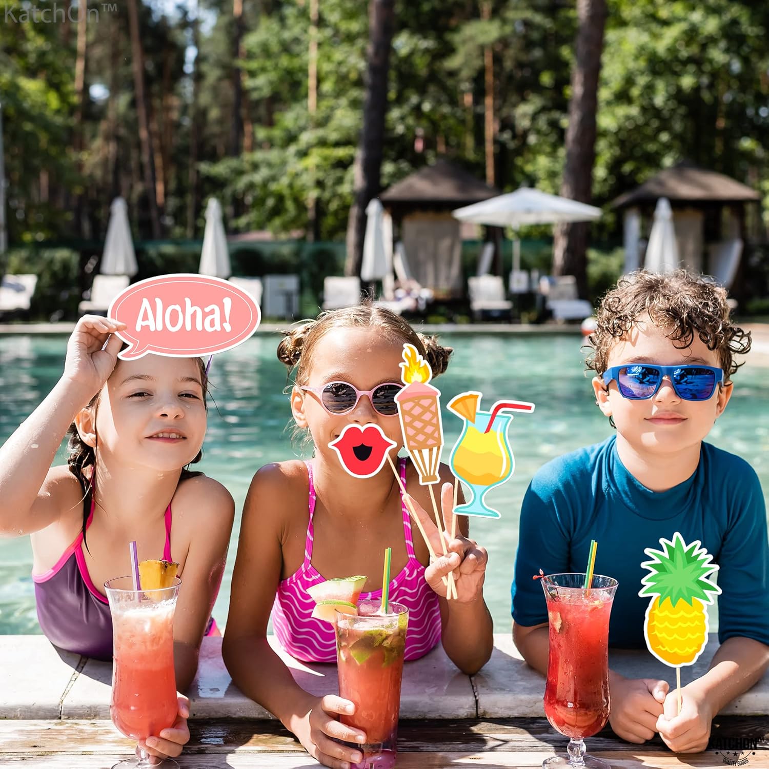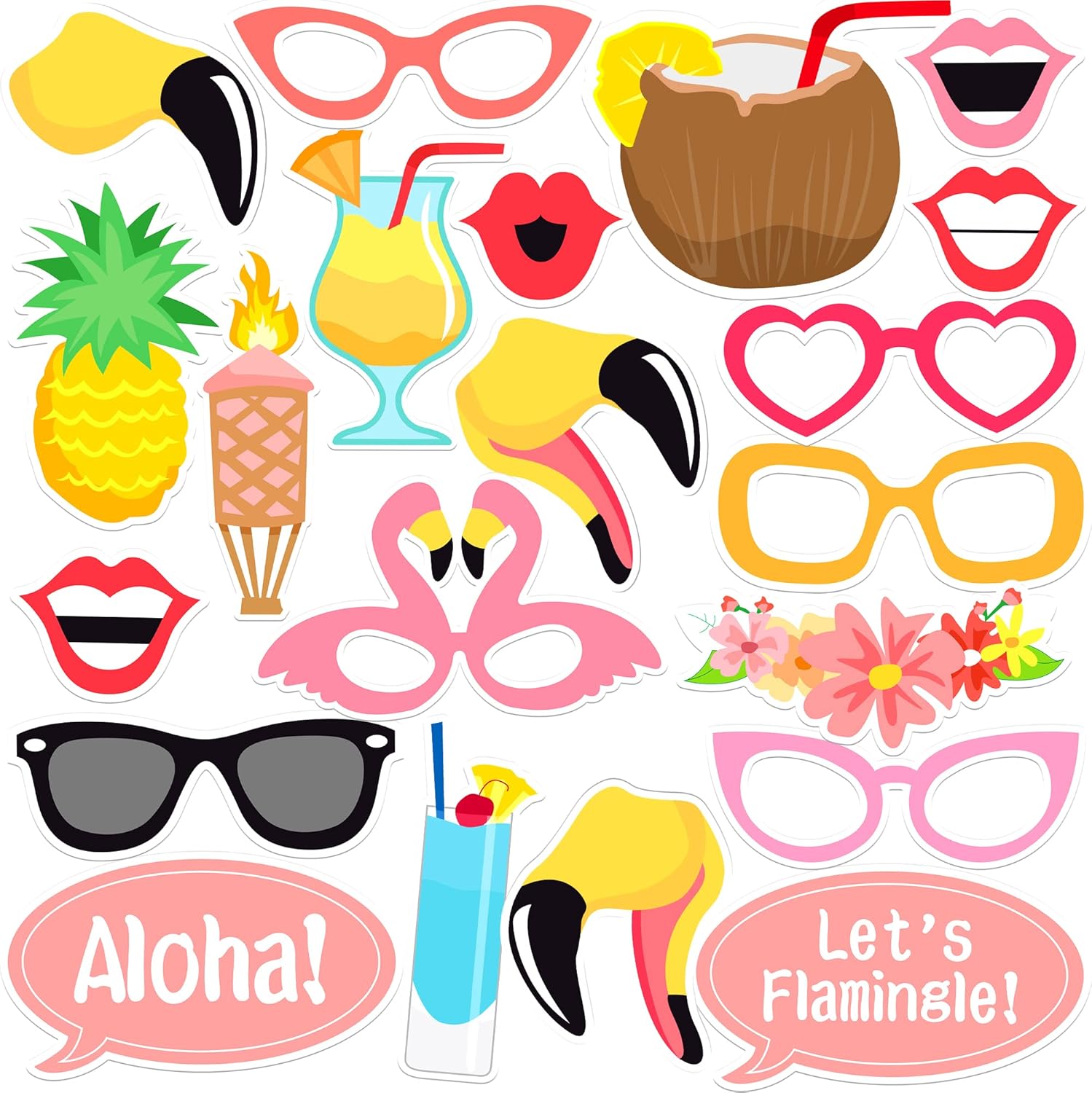 KatchOn, Luau Photo Booth Props - Pack of 21 | Tropical Photo Booth Props, Luau Party Decorations | Beach Party Decoration | Hawaiian Prop, Hawaiian Themed Party Decoration Flamingo Party Decorations