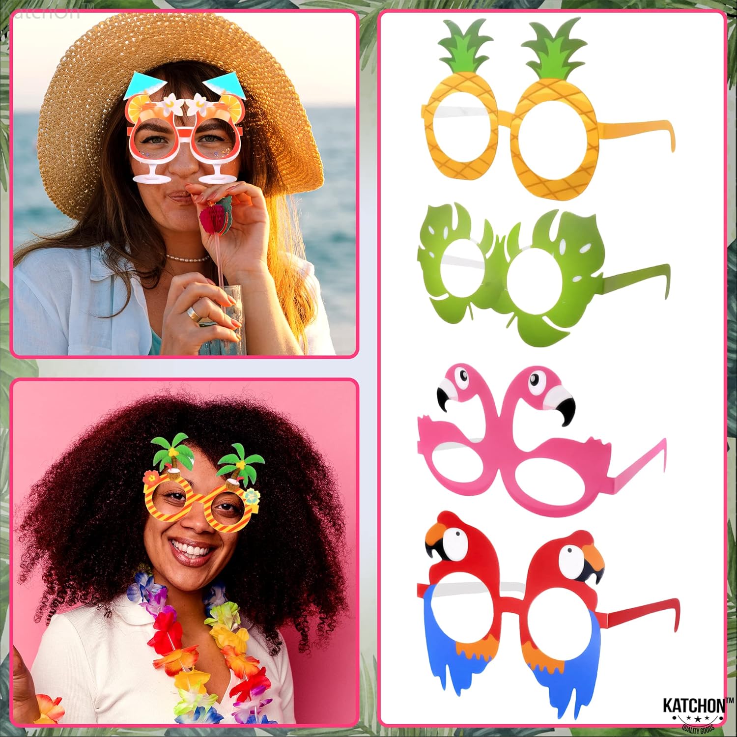 - STURDY | HIGH QUALITY : Our katchon hawaiian luau party glasses for kids are made of cardstock material a sturdy construction. This aloha glass props eyewear in our summer photo booth party supplies come with multiple style made of grade A quality. Elevate your luau party decorations, safari birthday decorations or summer birthday decorations with our tropical party props which can make your kids stand out in the crowd. Add a touch of beach themed party decorations to your party with our summer hawaiian glasses for kids.