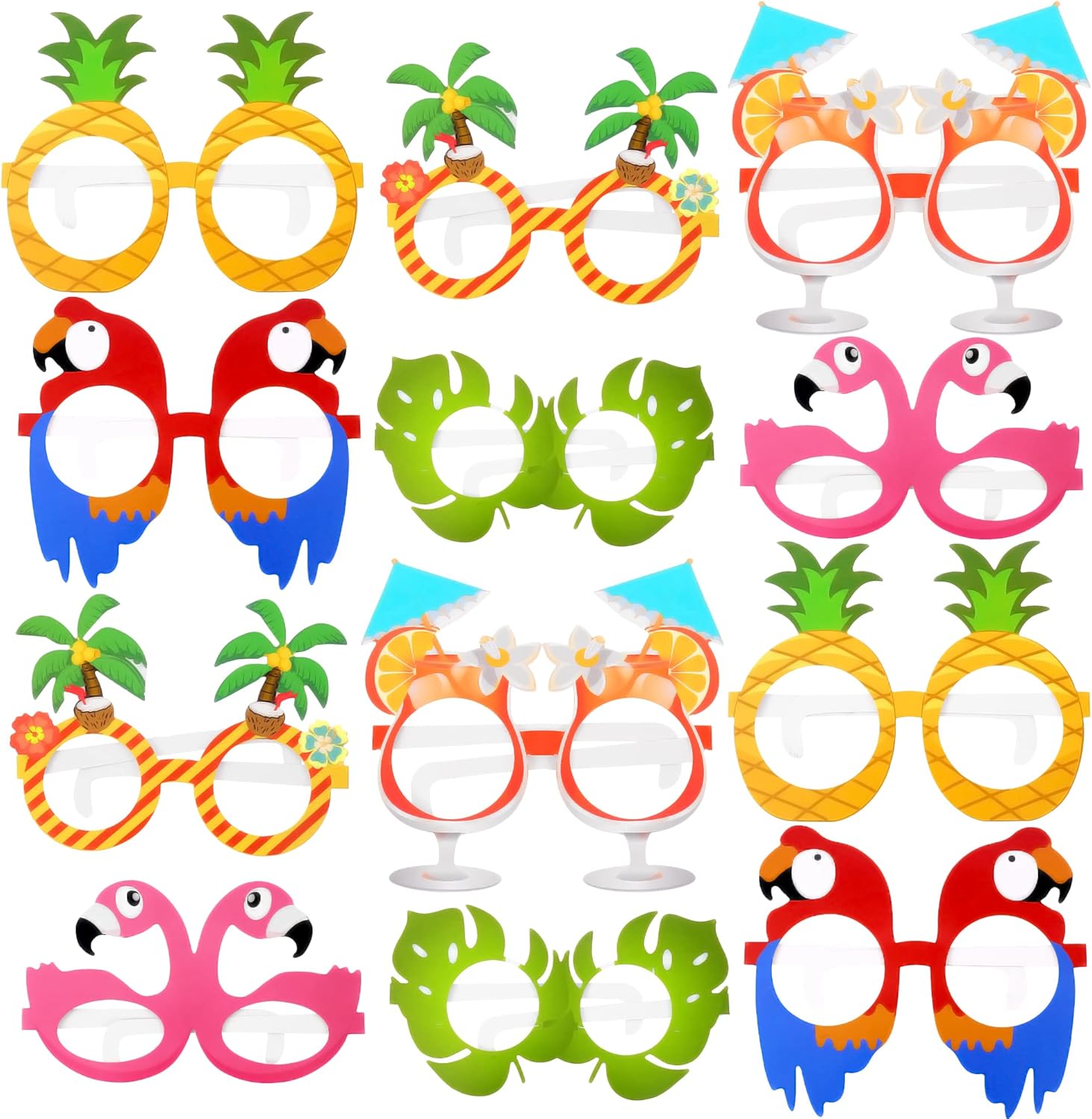- PACK OF 12 | CREATIVE | TROPICAL GLASSES : Are you looking for a fun summer photo booth props? Then you are at the right place. These summer themed photo booth props are transparent spherical tropical party glasses comes in pack of 12 that are filled with 6 different design of flamingo, macaw, palm tree, aloha, etc. This hawaiian photo props in our hawaiian themed party decorations will set you apart from the others. Capture the aloha spirit with our lively styllish hawaiian photo booth props.