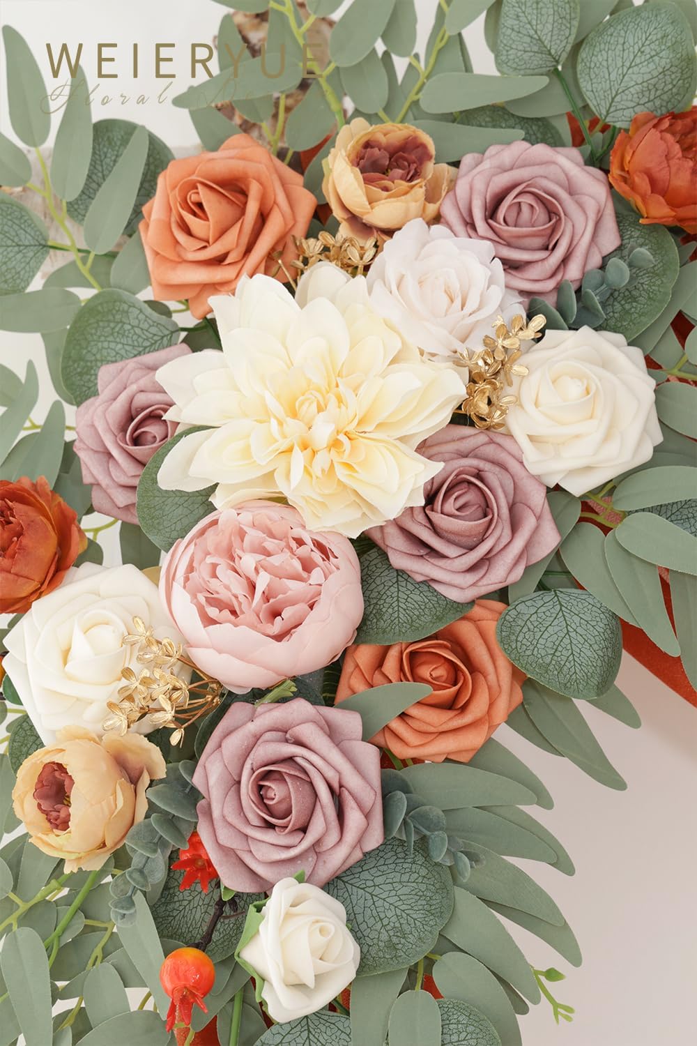 Artificial Wedding Arch Flowers Kit(Pack of 3),2Pcs Artificial Flower Arch Decor,1Pcs Sheer Drape for Wedding Ceremony Arbor for WeddingCeremony (Burnt Orange Wedding)
