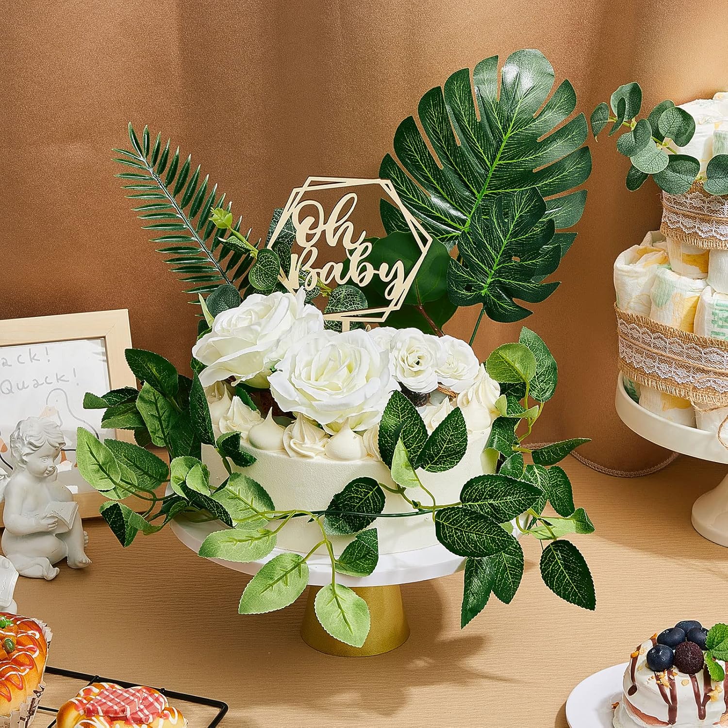 - Practical Combination Set: the package comes with 1 piece of cake topper, 6 pieces of fake roses, 4 pieces of white asters , 10 pieces of eucalyptus leaves, 5 pieces of monstera leaves, 5 pieces of iron leaves, 2 pieces of small eucalyptus and 1 piece of rose leaf rattan, a nice combination set to satisfy your diverse decoration demands