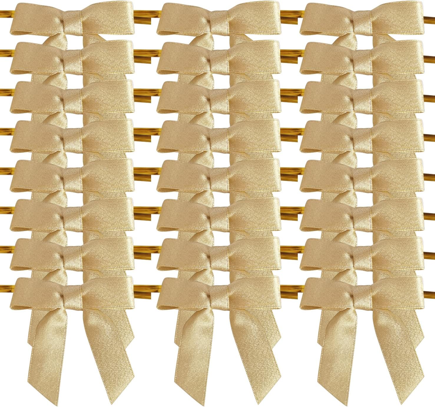 50pcs 2-1/2" Gold Satin Ribbon Bows with Twist Ties for Gift Wrapping Packing Christmas Decoration (Gold)