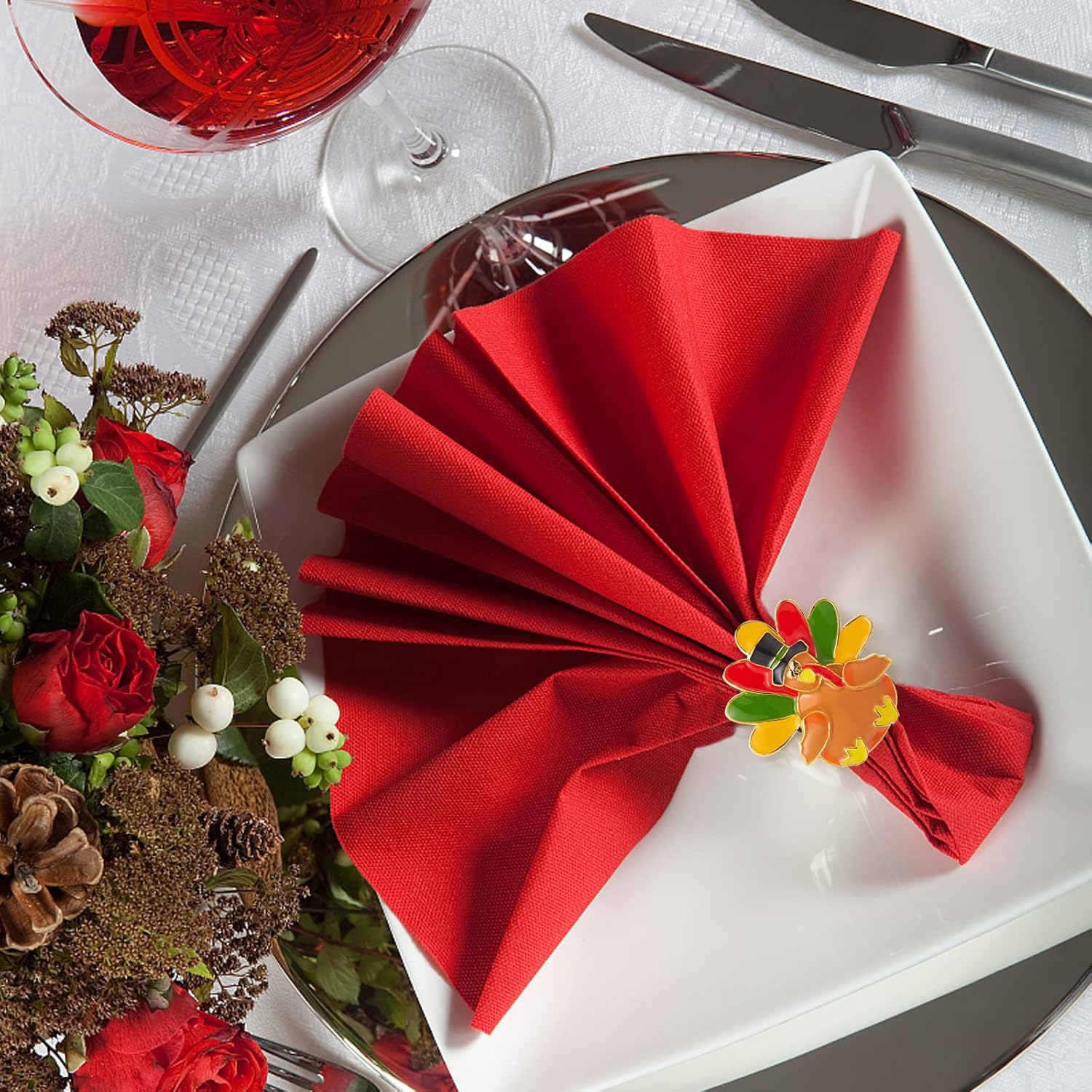 - Quality metal material: These turkey napkin ring are made of quality metal, which is durable and not easy to break or deform. The colorful pattern desigh and the polished surface add the atmosphere of thanksgiving day for your table. After each time use, please clean the napkin ring and keep it in a dry place for next time use.