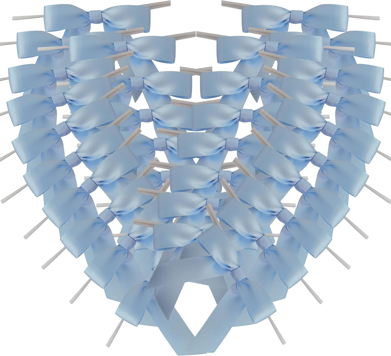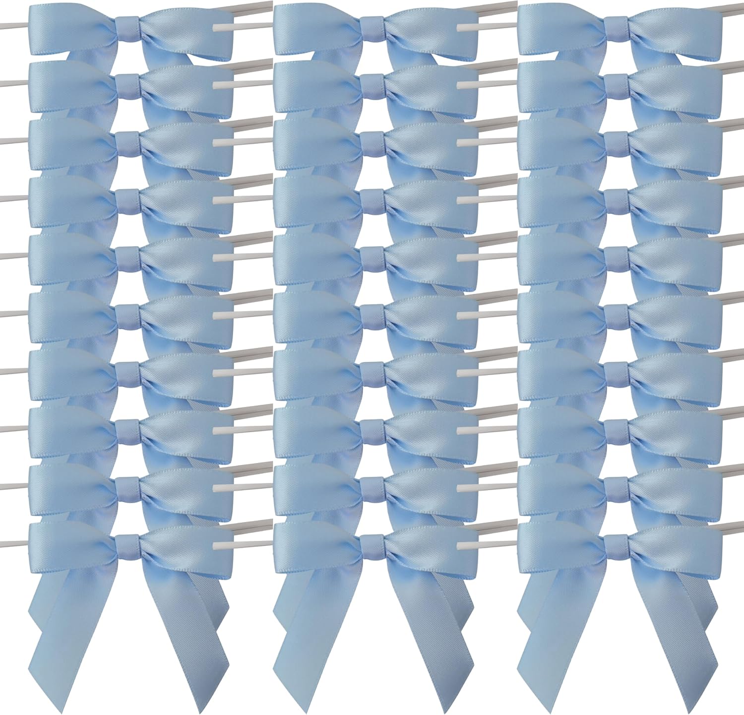 50pcs 2-1/2" Light Blue Satin Ribbon Bows with Twist Ties for Gift Wrapping Packing Christmas Decoration(Lt.Blue)