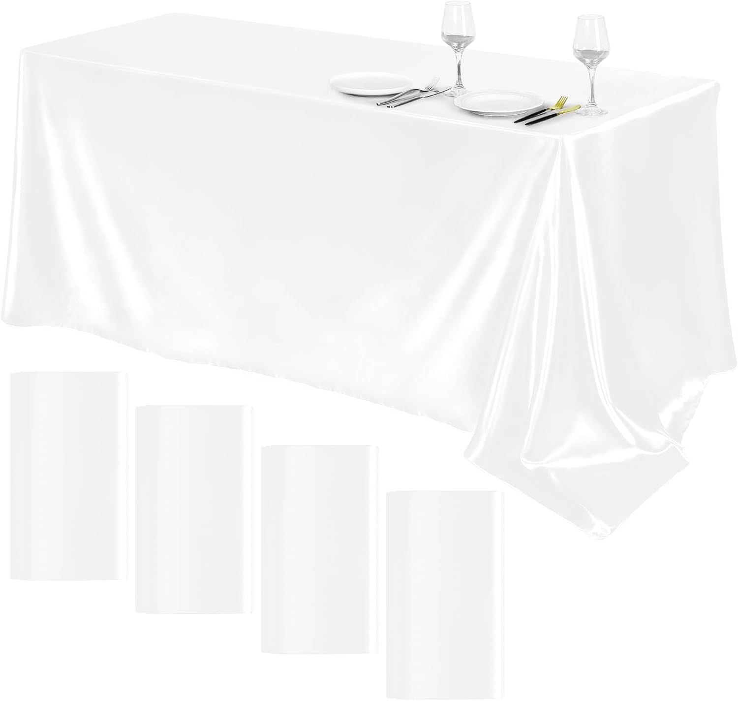 - Sufficient quantity: you will get 4 packs of white satin tablecloths, exquisite and elegant design, simple and stylish, which can add more design to your room, enhancing the decoration level of your house, the enough quantity can well meet your using needs; warm tip: due to manufacturing reasons, there might be a slight color difference, please understand