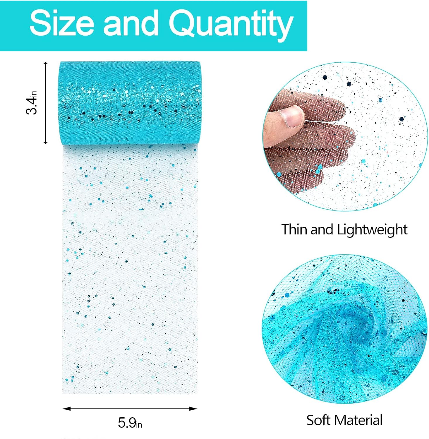 - 【6Inch x 50Yards】The tulle roll is a continuous long piece of tulle, measuring 15cm/6 inches wide, 50yards length. The shiny sparking and glitter sequin is more beautiful than another tulle. Flexible and easy to use.