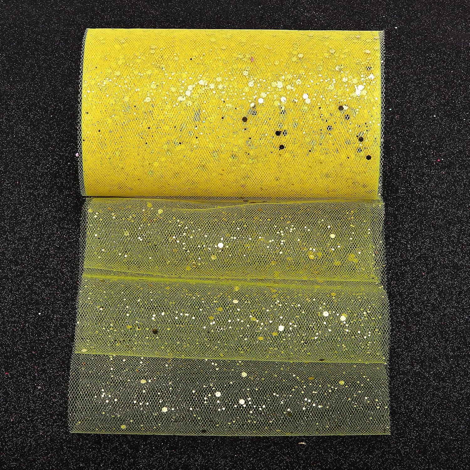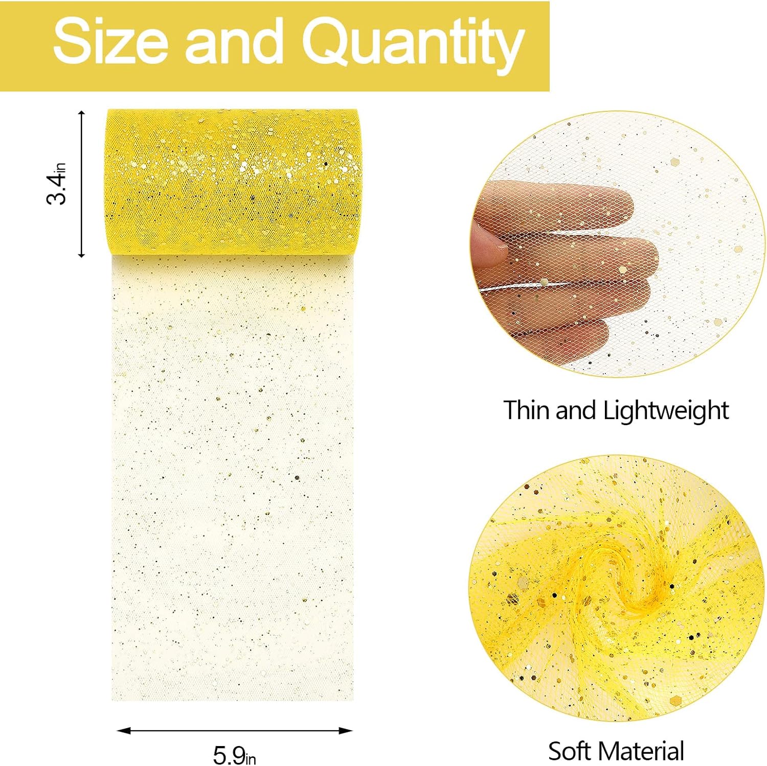 Glitter Tulle Rolls, 6” by 50 Yards (150FT) Sparkling Tulle Spool Ribbon Sequin Tulle Netting Fabric for Tutu Skirt Wedding Birthday Baby Shower (Yellow)