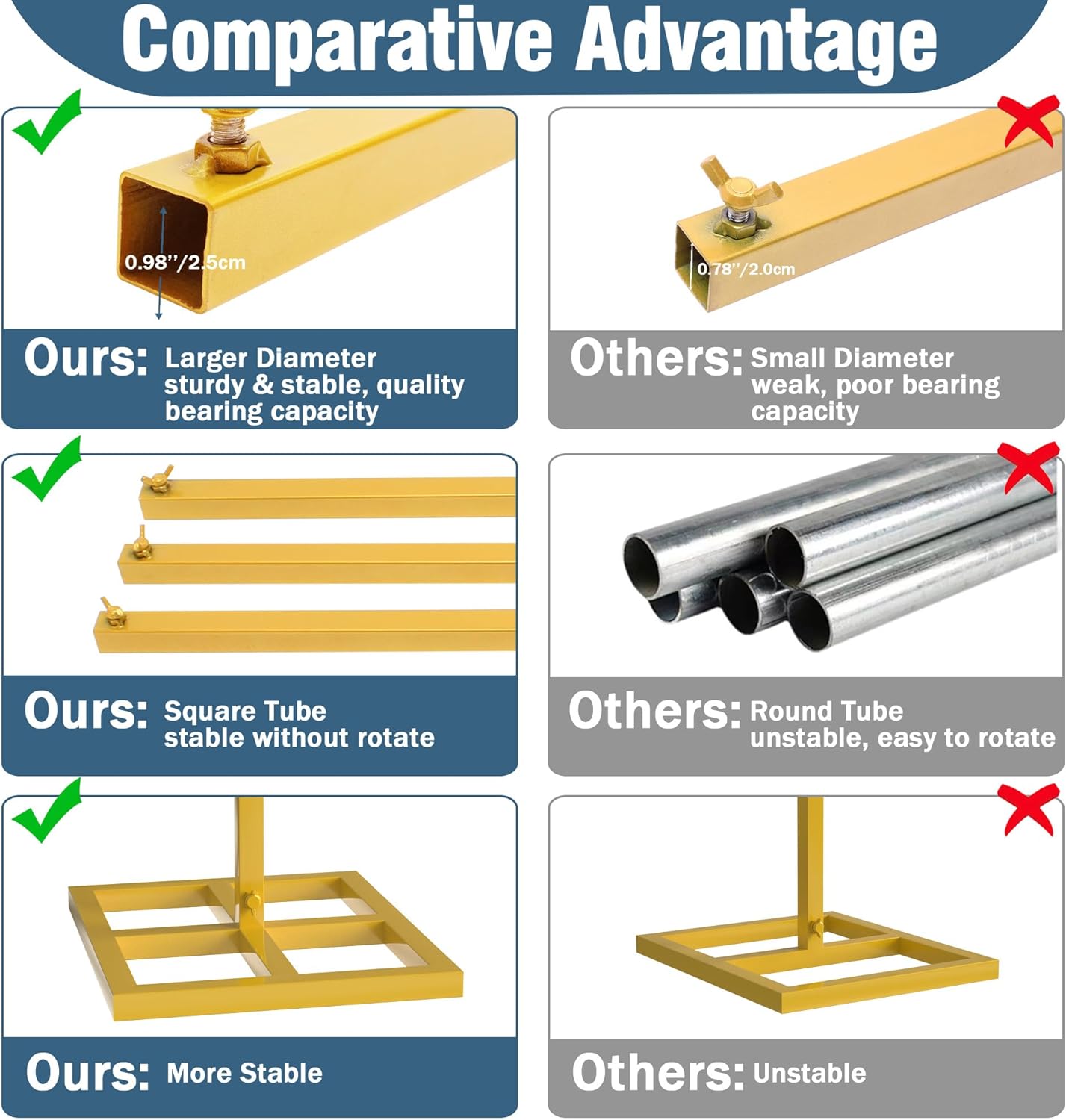 - 【Heavy Duty Backdrop Stand】The 10x10 ft (HxW) backdrop stand heavy duty backdrop frame with base features with 1.0mm thick quality toughness weather-resistant epoxy resin coated square pipe. Firmly square base legs provides a firm and balanced support, and it can be increase stability by adding some heavy stuffs on the base.