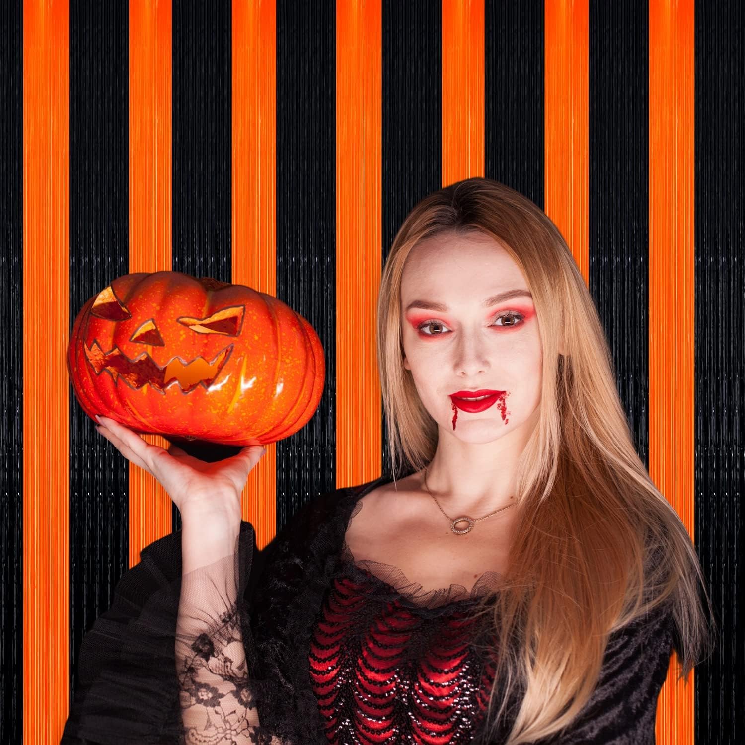 4 Pack Black Orange Foil Fringe Curtain Backdrop, 3.28Ft x 9.8Ft Metallic Tinsel Foil Fringe Streamers Curtains for Photo Booth, Wedding, Thanksgiving, Birthday, Christmas, Halloween Party Decoration
