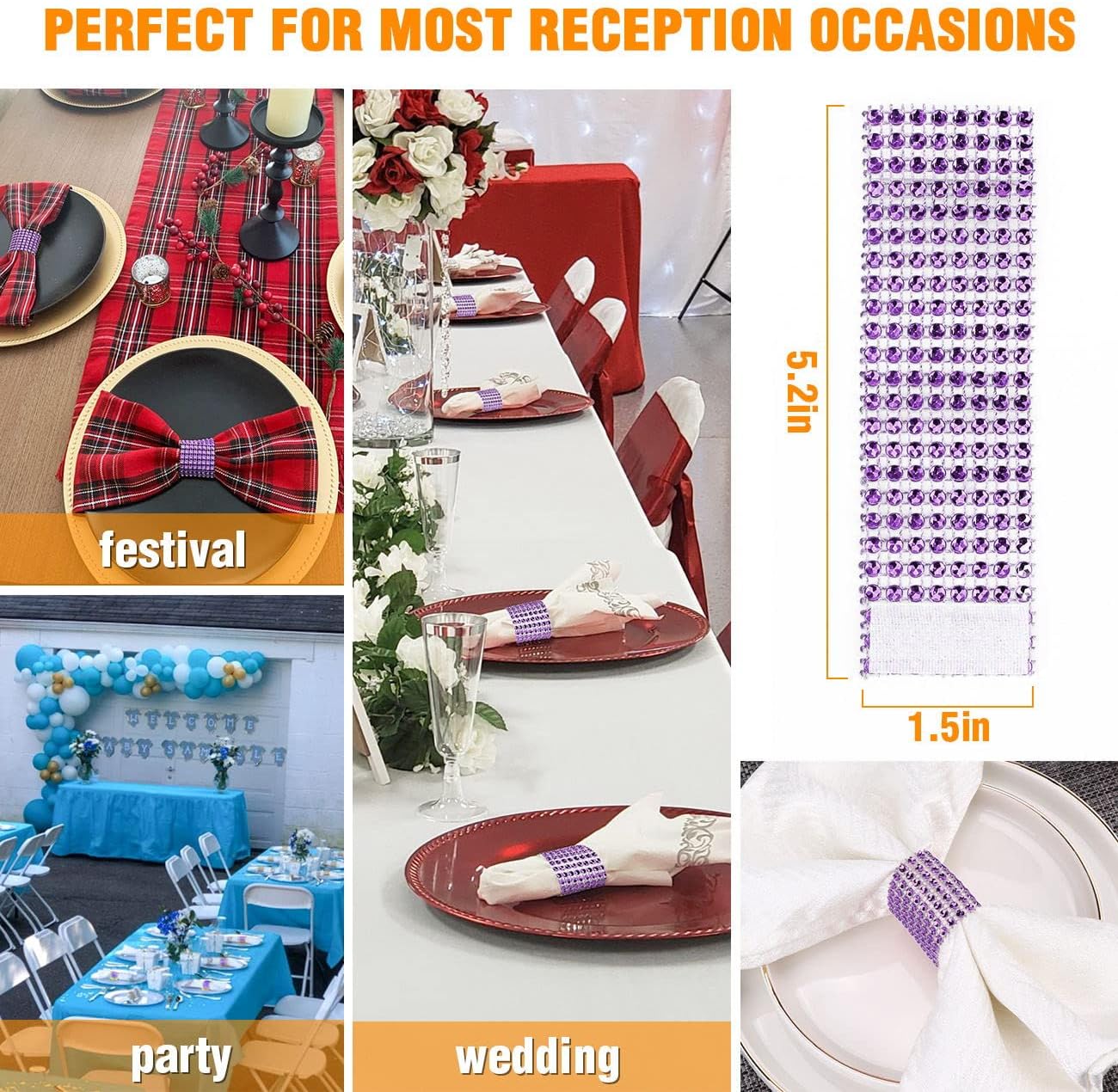 - Reusable: This purple party napkin rings car reusable and they are also cheap enough for one-time use.