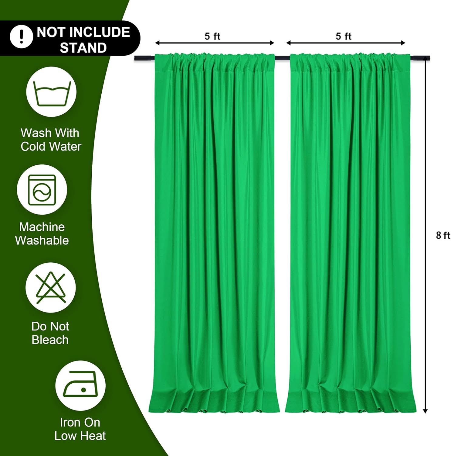 - DIMENSIONS: Each package includes 2 panels polyester backdrop drapes. Each curtain measures 5 feet wide x 8 feet high. Entire backdrop measures 10 feet wide x 8 feet high. Cannot block the light.