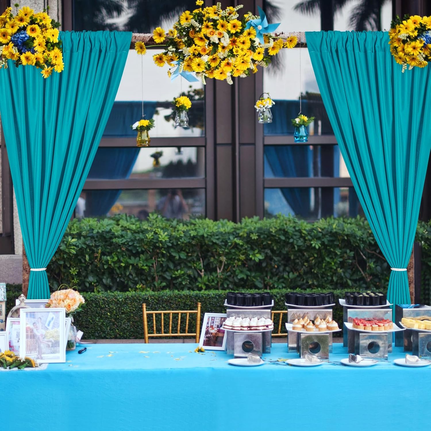 DWCN 10x7 FT Backdrop Curtains for Parties, Photography Backdrop Drapes with Rod Pockets for Wedding Decorations Stage Birthday Family Gatherings, 2 Panels 5ft x 7ft, Turquoise