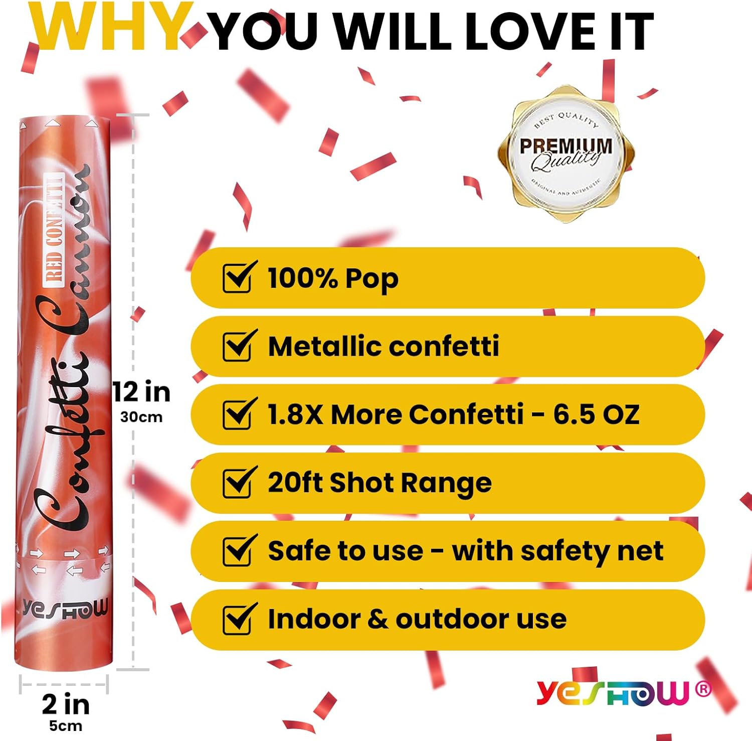 Confetti Cannon Party Poppers Shooters Red,YESHOW Confetti Bomb Blaster(6 pack) for Birthday Christmas New Year’s Eve Wedding Graduation